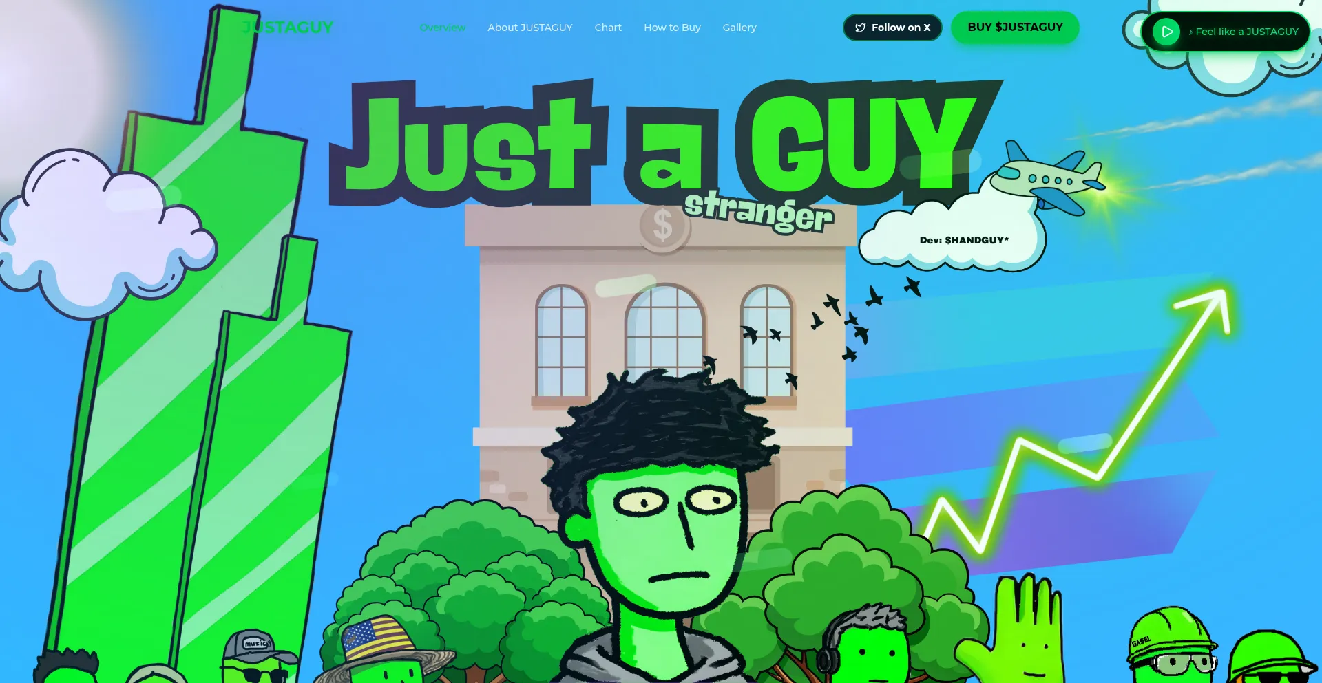 JUSTAGUY in a world full of green candles. The chart only goes up 🟩🟩🟩 - The greenest meme on Solana.