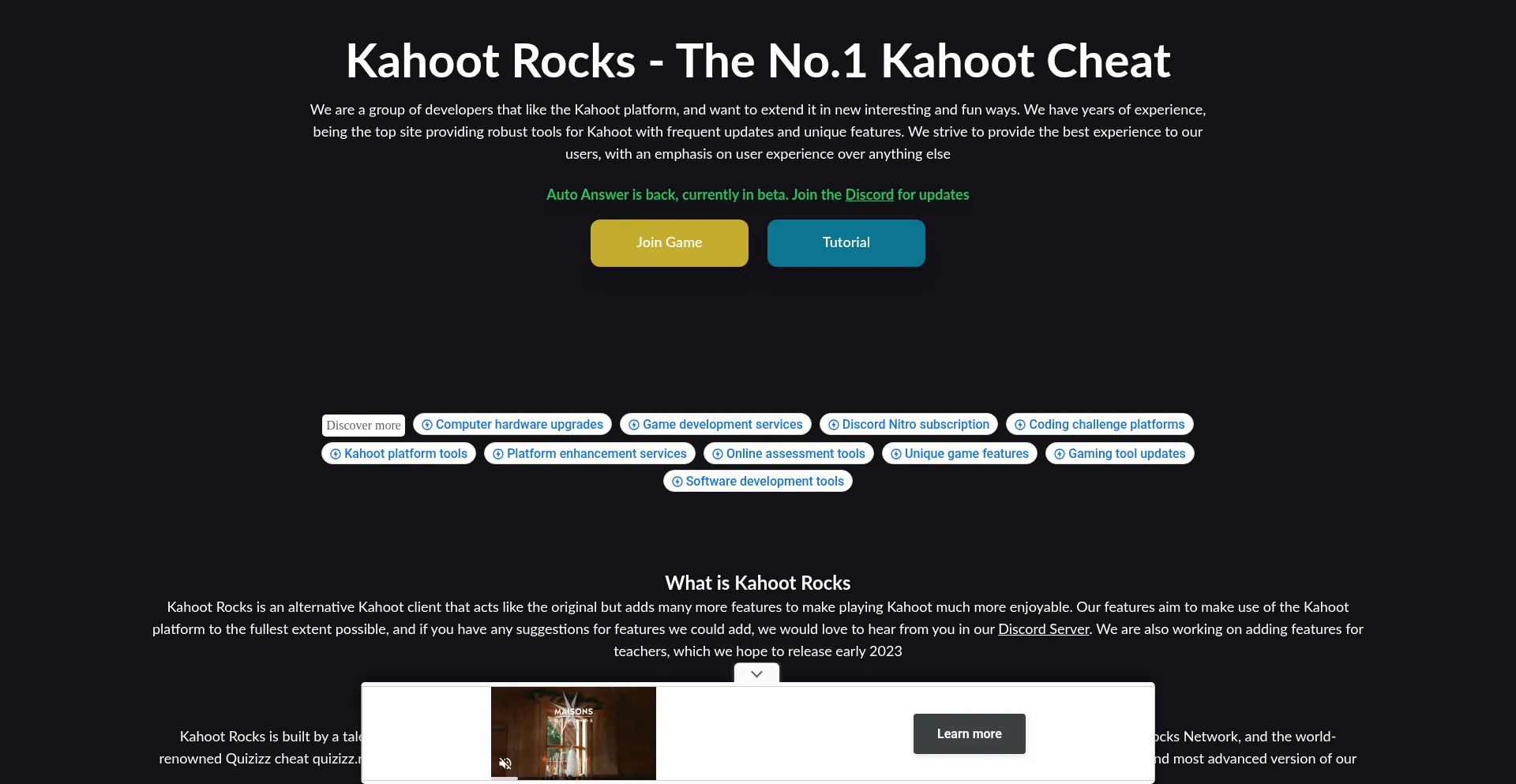 Built from the ground up to be as fast as possible, Kahoot.rocks will fulfill all your Kahoot-hacking needs. We have the only working auto answer, and it works on every Kahoot