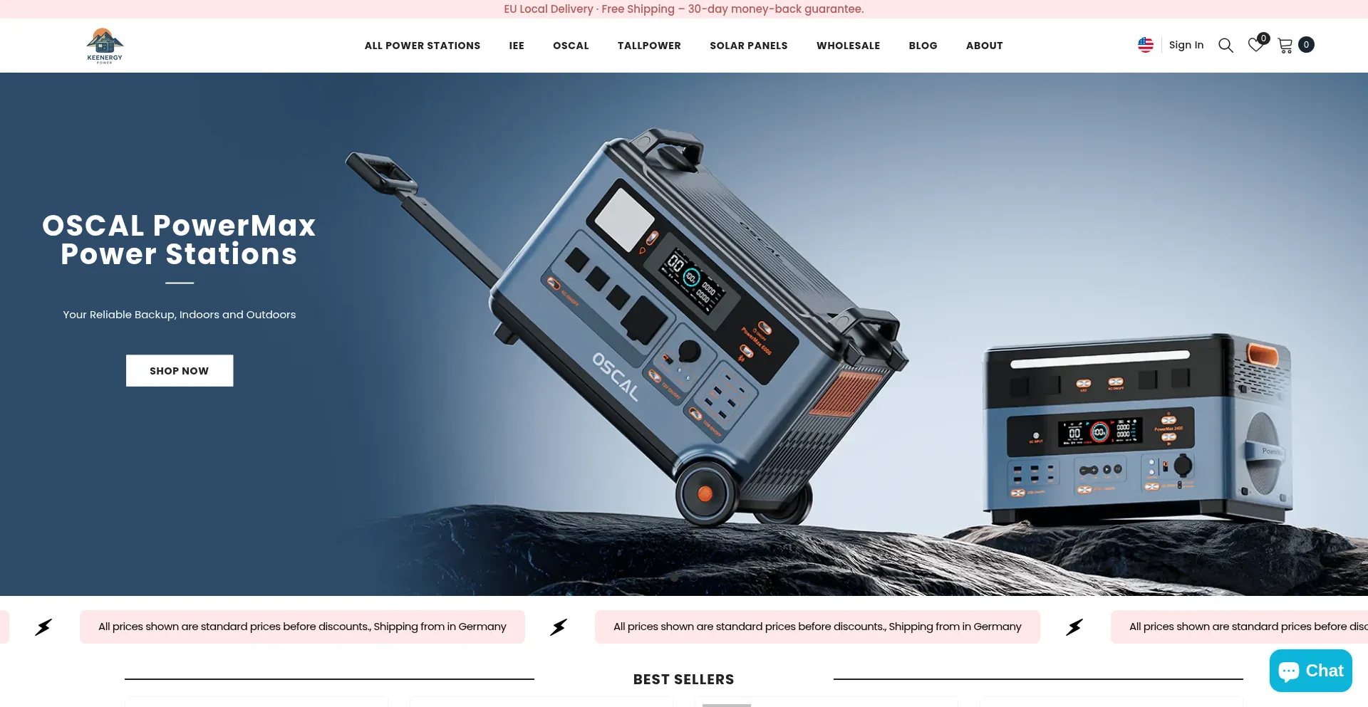 Shop IEE、OSCAL and TALLPOWER portable solar generators at Keenergy Power. Reliable, high-capacity solutions for camping, RVs, and home backup with solar charging options.