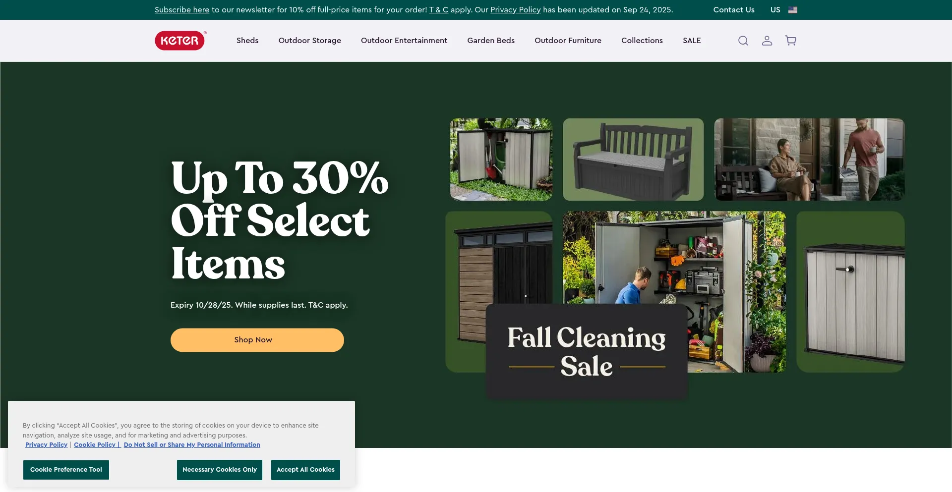 Die Website implementiert Cookie-Zustimmungsmechanismen in Compliance mit Datenschutzregulierungen wie DSGVO oder CCPA. Dies demonstriert, dass keter.com Datenschutzstandards einhält und Benutzern Kontrolle über persönliche Datenerfassungspraktiken bietet.
