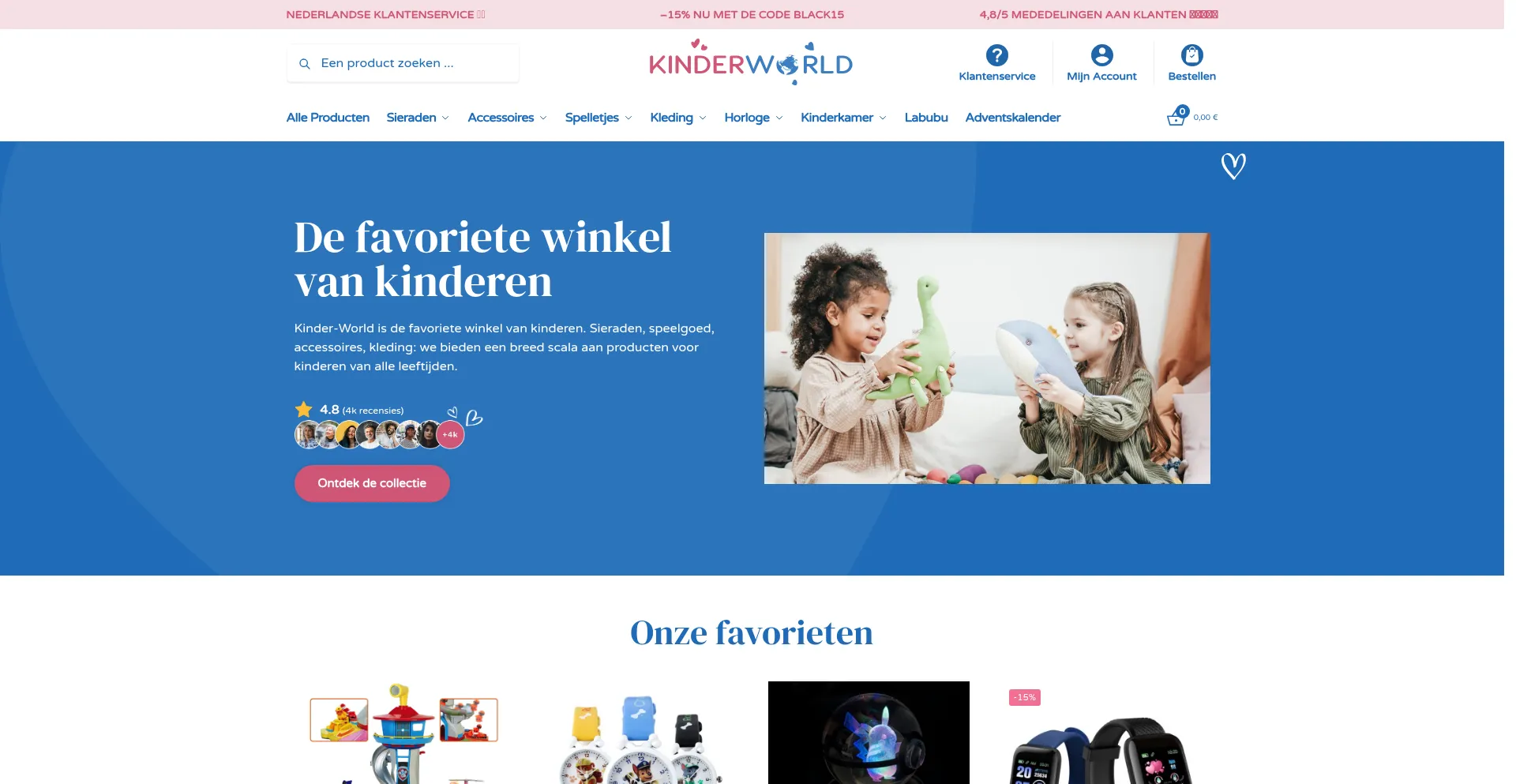 Kinder-World is de favoriete winkel van kinderen. Ontdek onze uitgebreide collectie kleding, speelgoed, accessoires en sieraden.