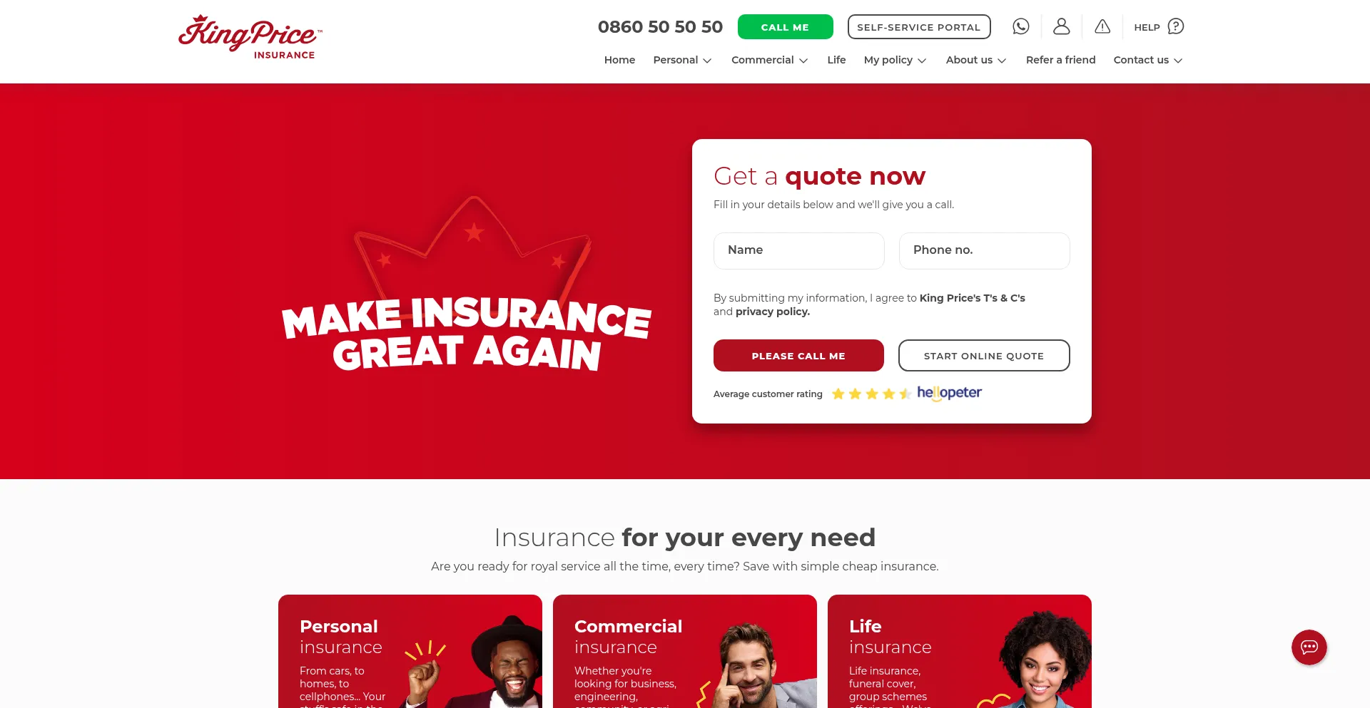 Insurance for your every need! Get quick, cheap, and simple insurance quotes from King Price. Enjoy royal service all the time, every time, and save with decreasing car premiums!