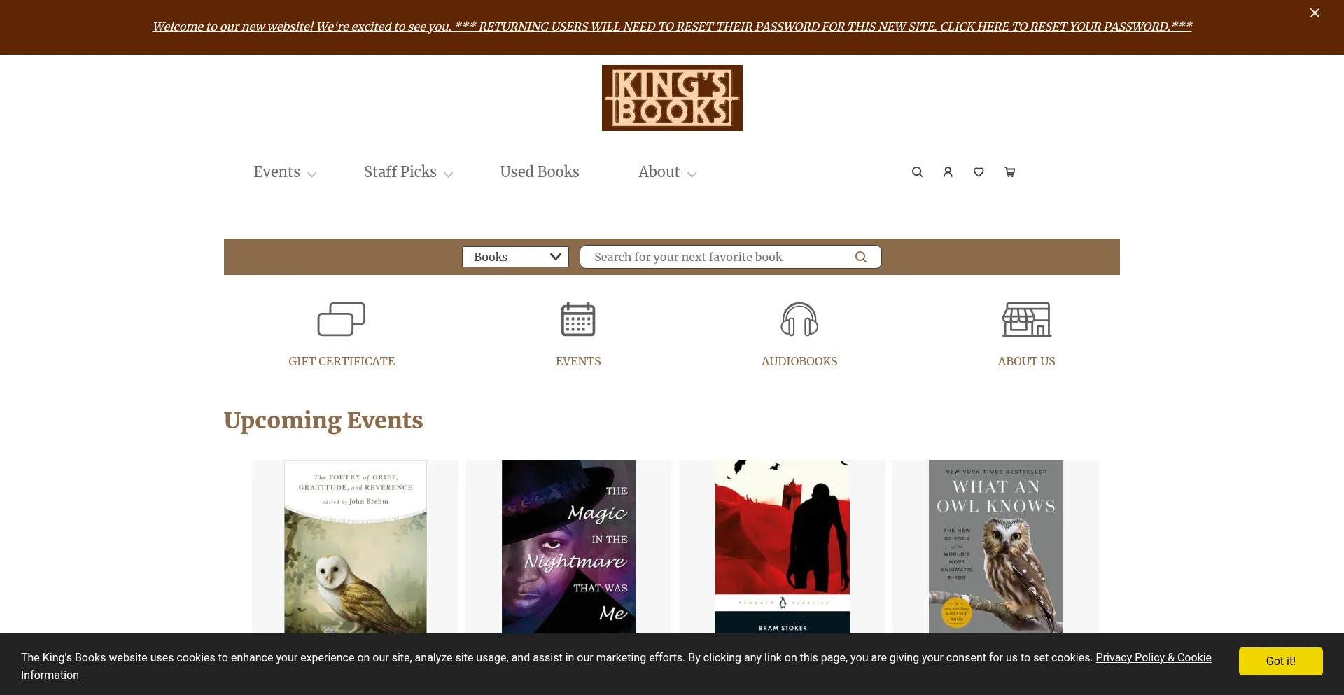 The King's Books website uses cookies to enhance your experience on our site, analyze site usage, and assist in our marketing efforts.