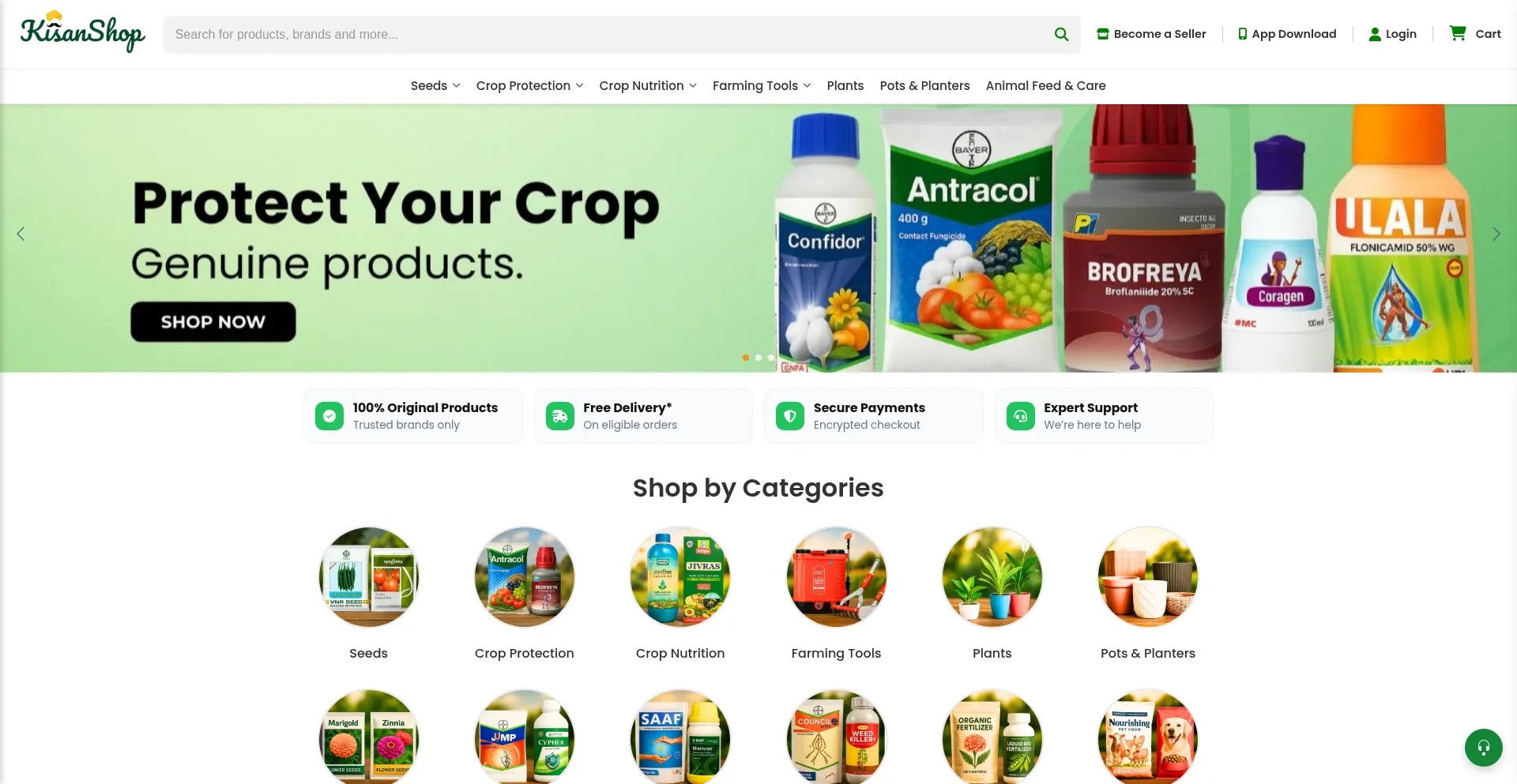 KisanShop is your one-stop online agricultural store for original seeds, pesticides, fertilizers, crop nutrition and farming tools from top brands. Fast delivery and GST invoice.