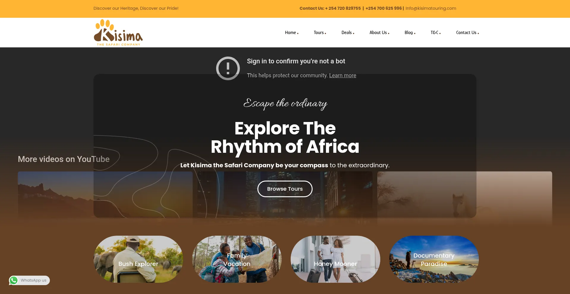 Die Anwesenheit von Social-Media-Links auf der Website deutet darauf hin, dass kisimatouring.com offizielle Konten auf Social-Media-Plattformen beibehält, was ein positiver Indikator für Glaubwürdigkeit und Engagement ist.