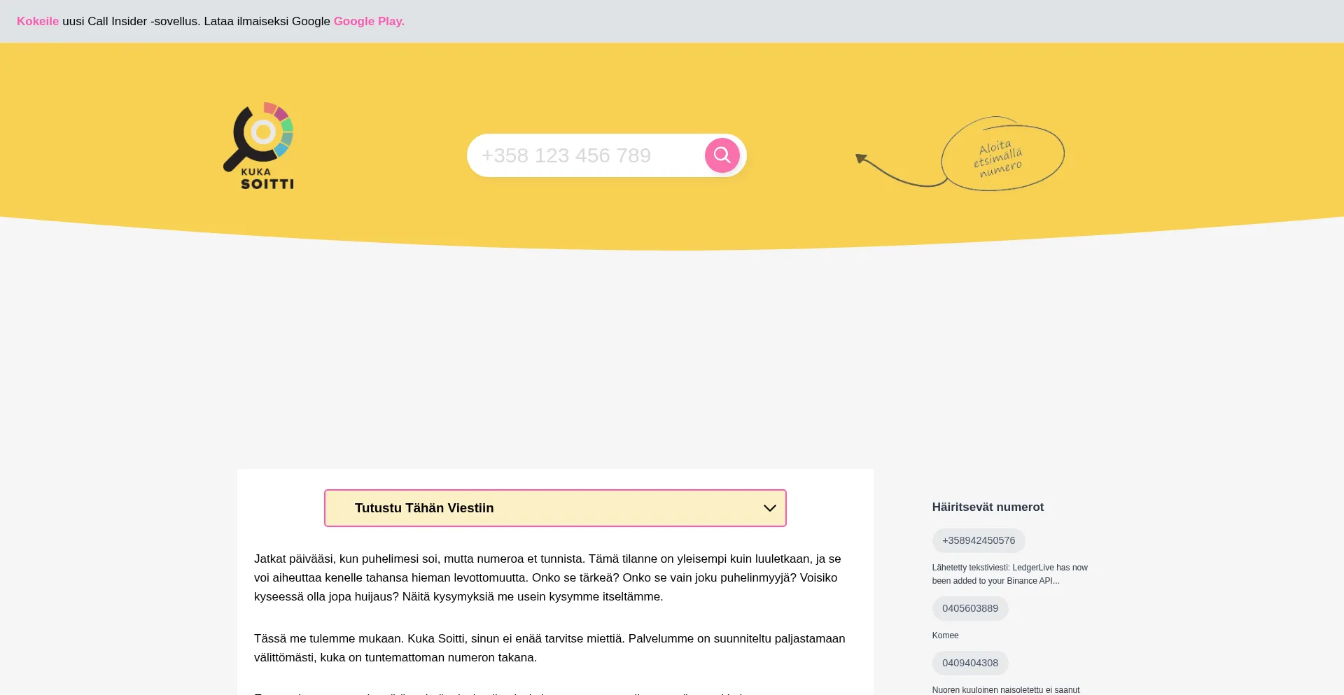 Selvitä tuntemattomien soittajien henkilöllisyys Kuka Soittin avulla. Maksuttoman työkalumme avulla saat nopeasti selville, kuka sinulle soitti