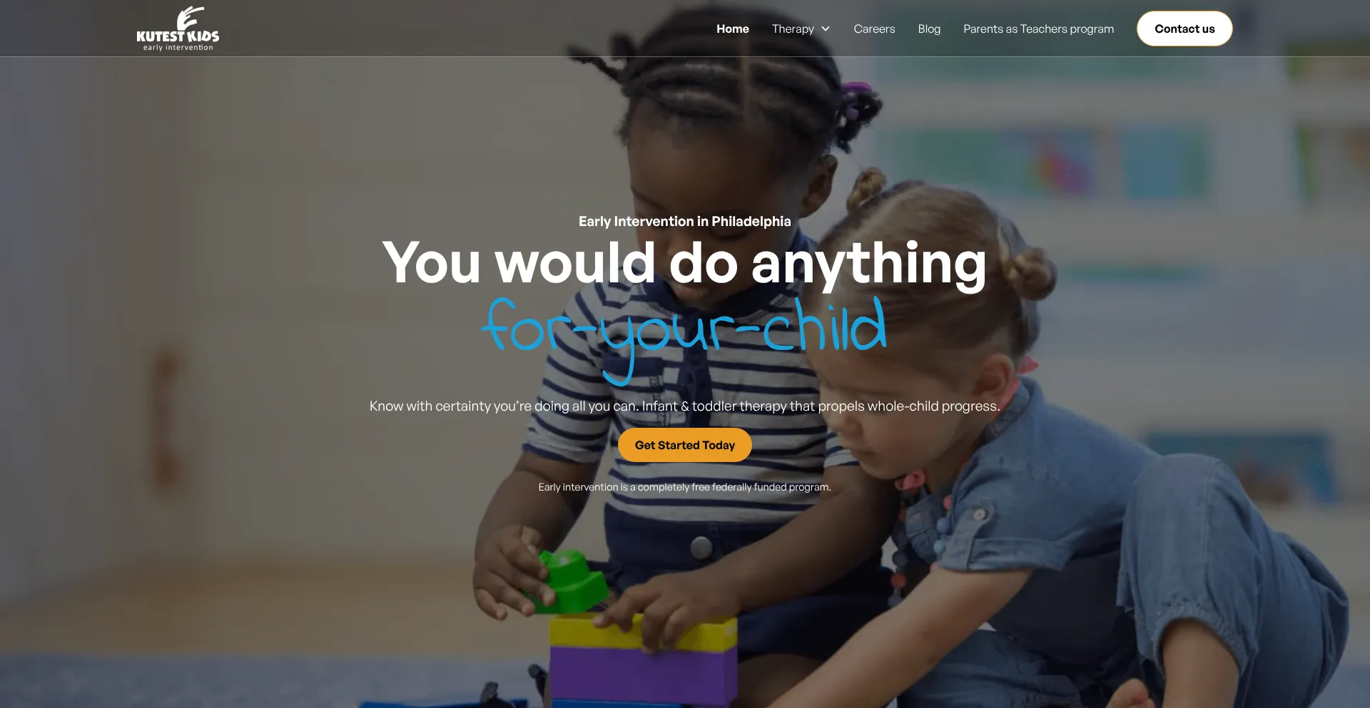 Kutest Kids is the leading provider of early intervention services in Philadelphia offering speech, occupational, and physical therapies for children's optimal development.