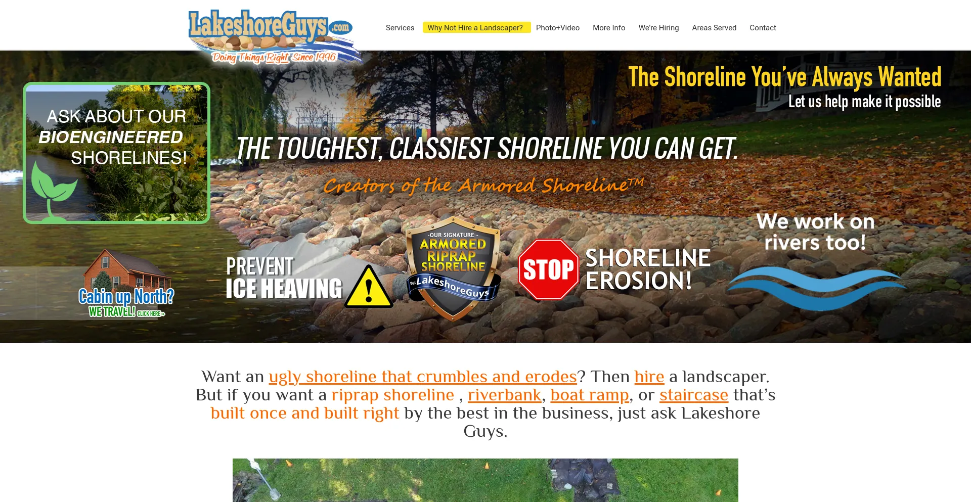 MN & WI Shoreline Restoration & Riprap for Lakes, Ponds & Rivers · Stop Erosion · MN DNR-Approved Shorelines · Boat Ramp Construction · Steps & Staircase Construction