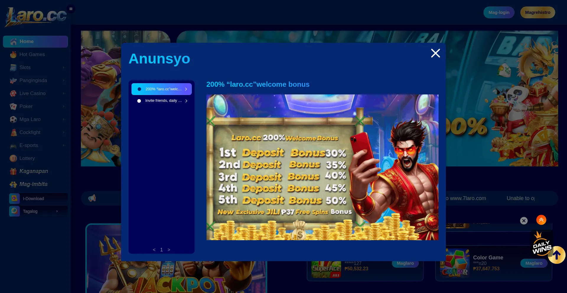 Unlock endless fun at Laro.CC! Play trending online games, live casino tables, and real-money slots—all tailored for Filipino players. Safe, fast, and 100% legit. Join now!