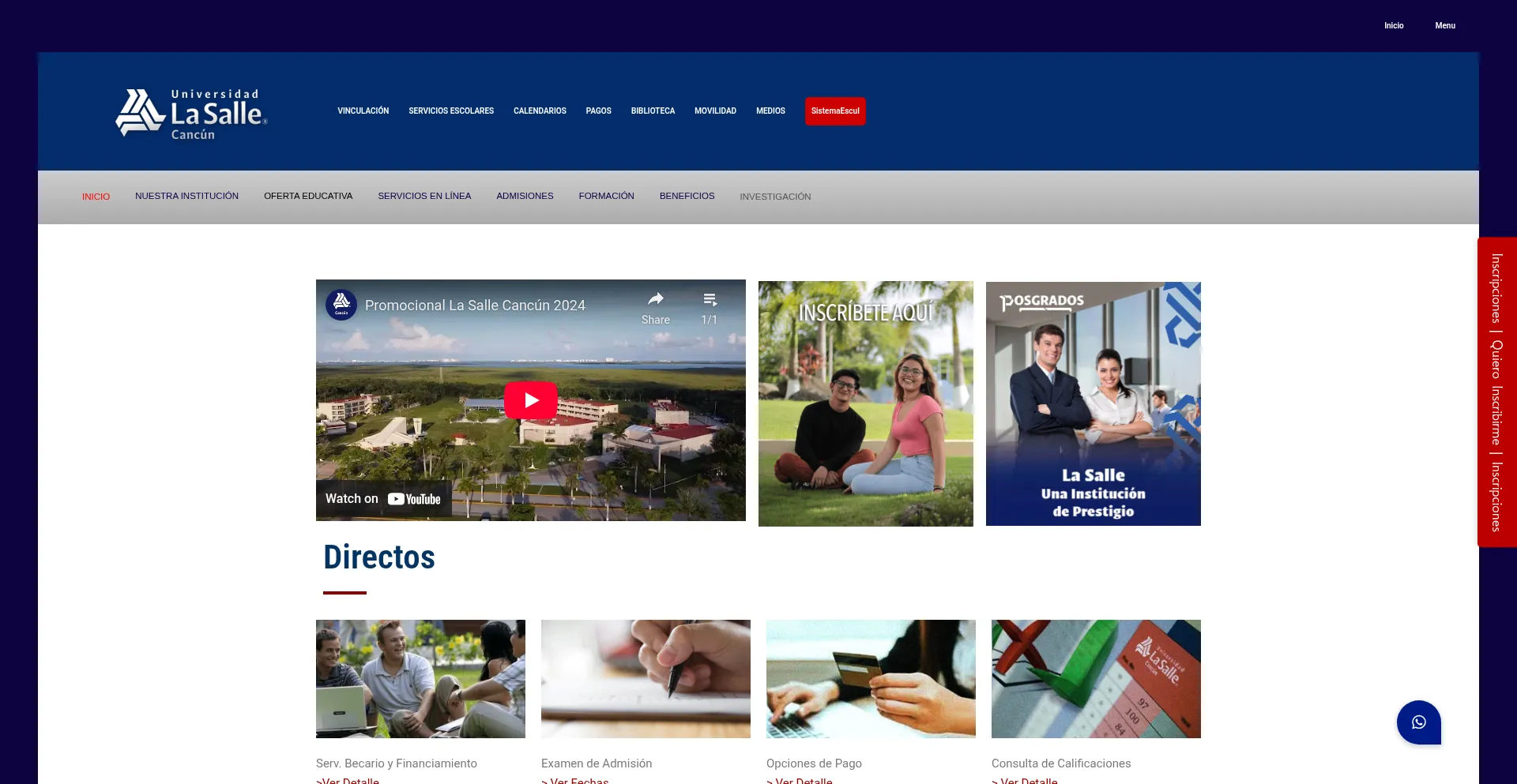Accesos Directos Calendario de Eventos La Universidad La Salle Cancún A.C., con domicilio en carretera Cancún-Playa del Carmen KM 11.5 Mz. 1 Lt. 1 Sm 299, Cancún, Quintana Ro...