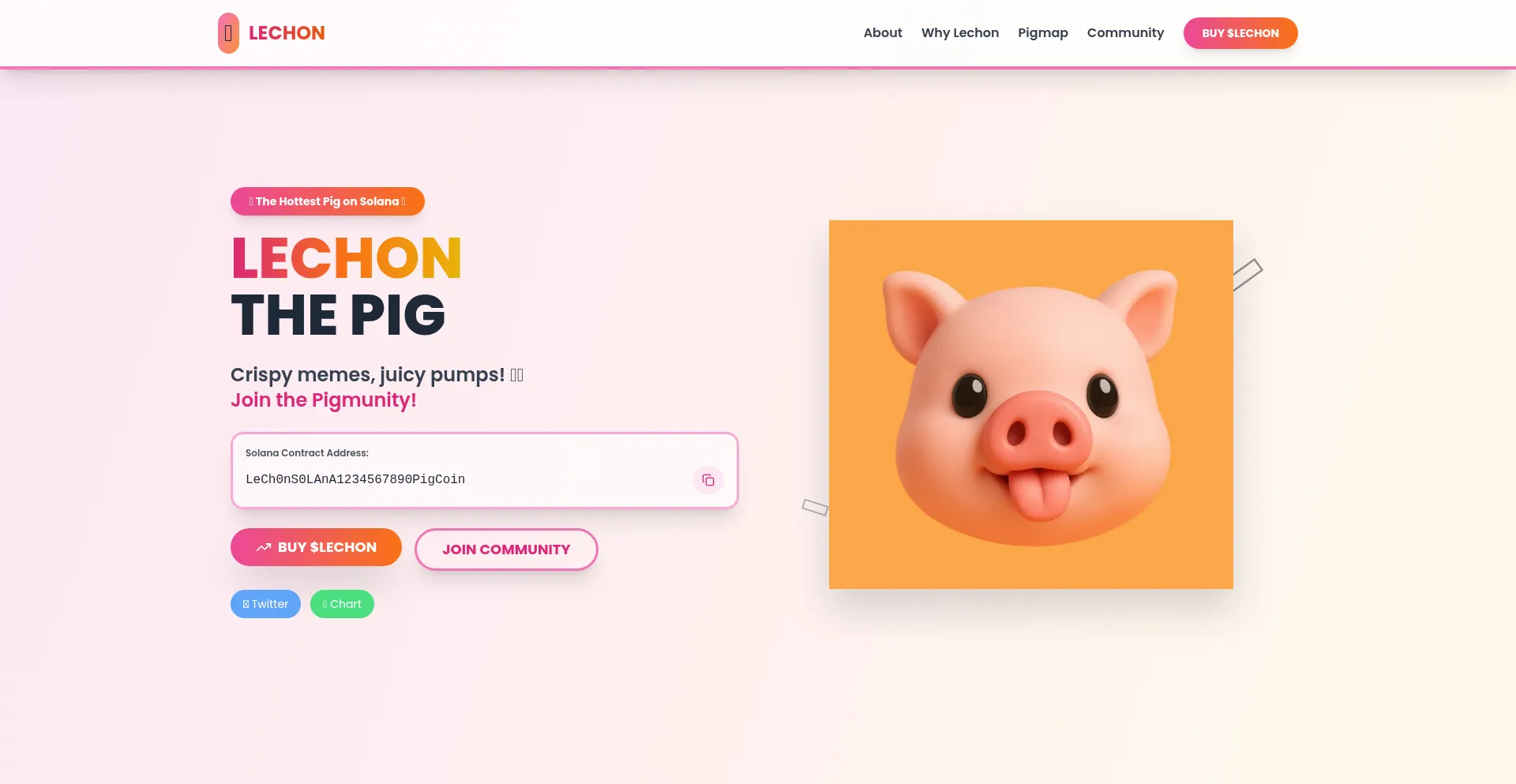 Join the Pigmunity! Lechon The Pig - The most delicious meme coin on Solana. Crispy gains, juicy pumps, and a community that's all about having fun!