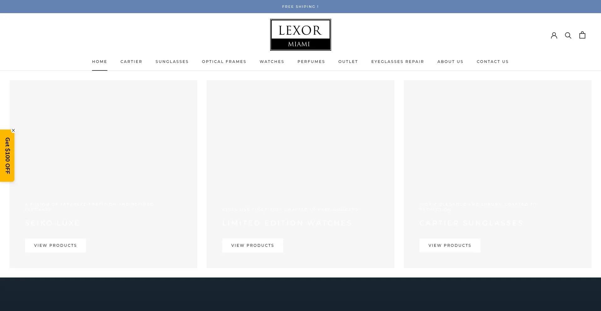Lexor Miami is the biggest Sunglasses Watches Perfumes Authorized Dealer in Miami. We carry Most famous brands in the world like Cartier, Gucci, Dita, Rayban, Oakley, Cazal, Fen...