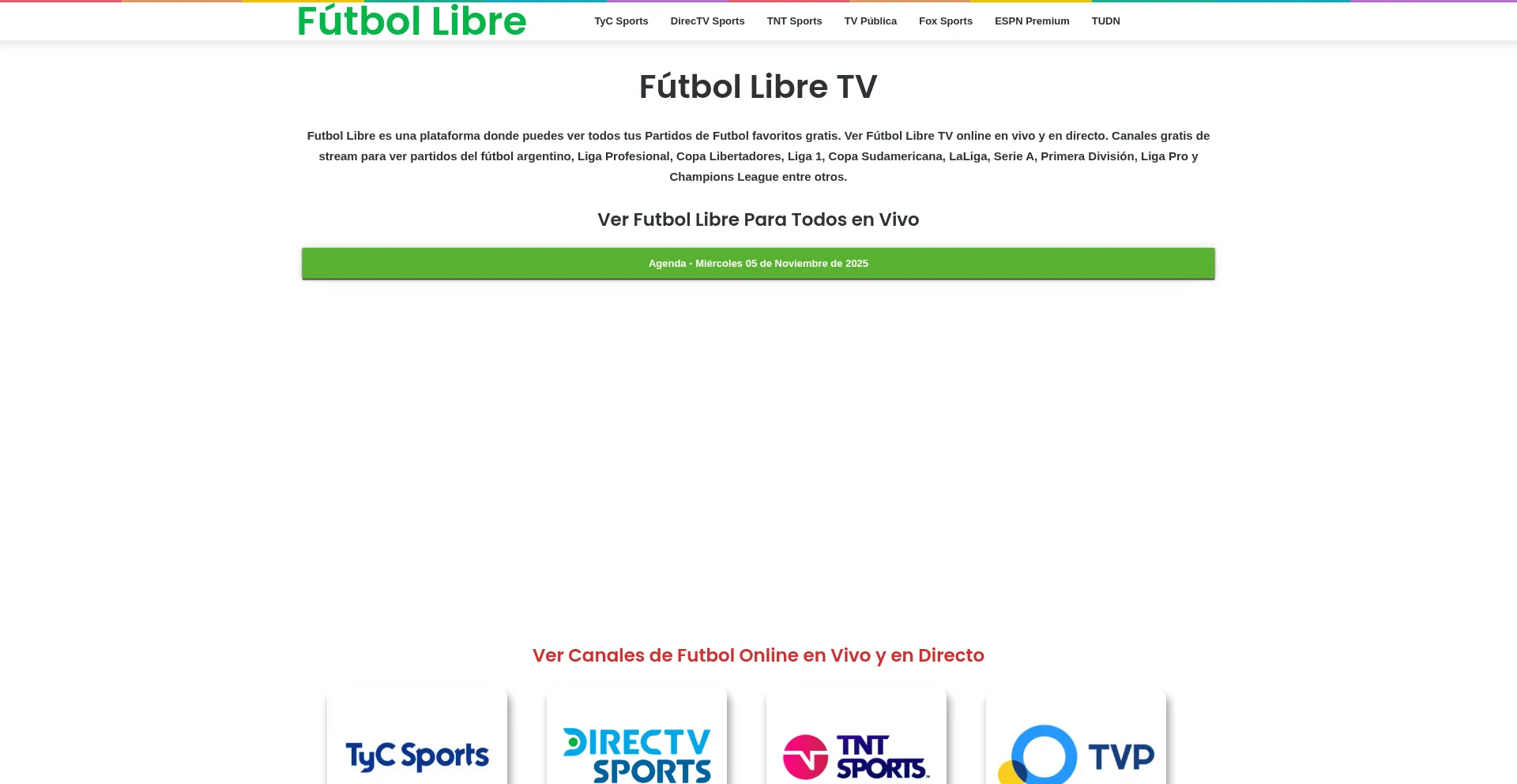Fútbol Libre - Ver Partidos de Fútbol y Canales de Futbol en Vivo Gratis