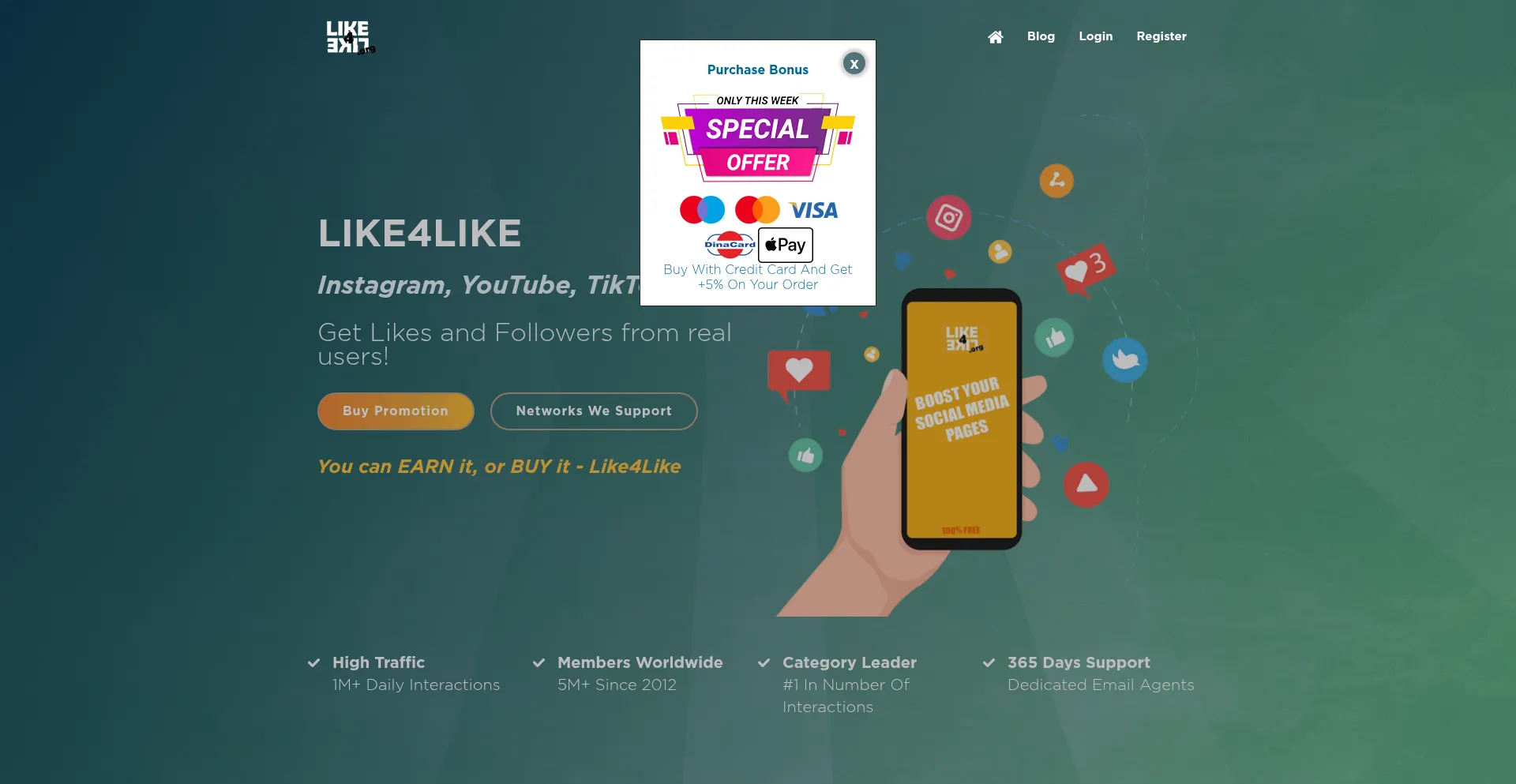 Like4Like is a free and easy-to-use promotion service that features a unique system for exchanging likes. Buy Likes & Followers on Instagram, TikTok, YouTube...