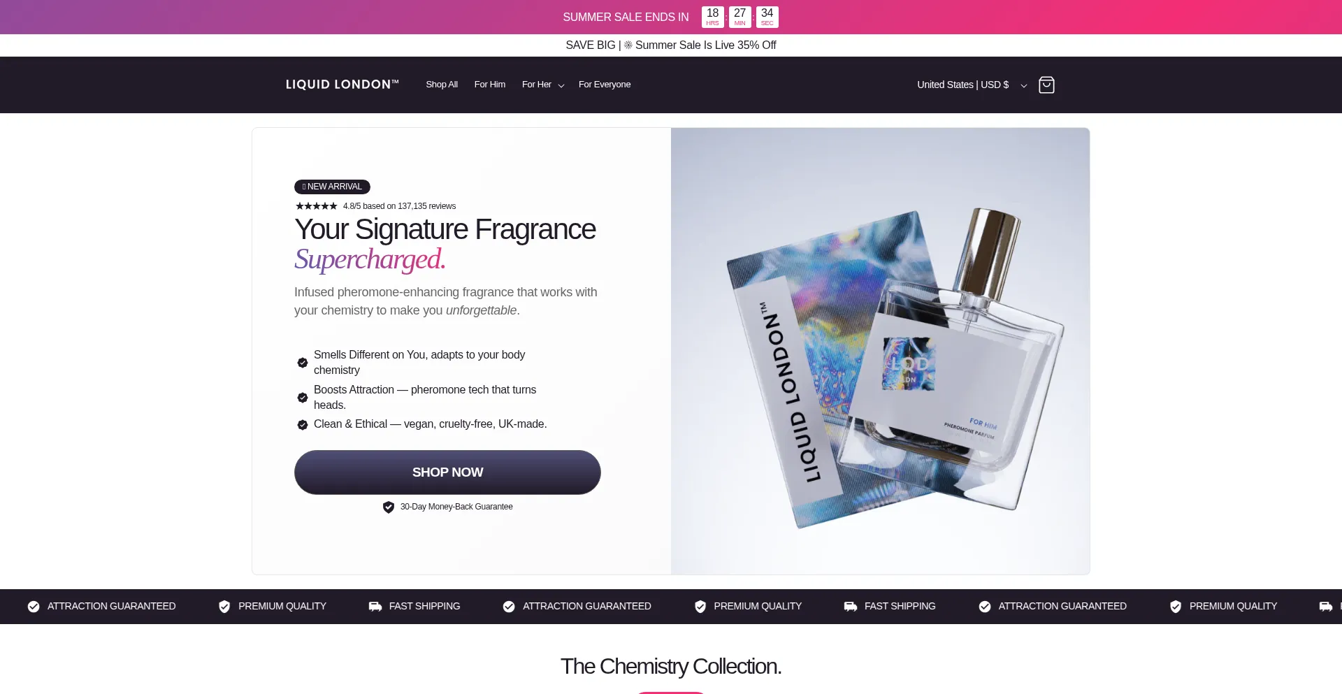 Boost your allure with Liquid London’s pheromone perfumes for men and women. Enjoy free delivery, a 30-day satisfaction guarantee, & science-backed fragrances.