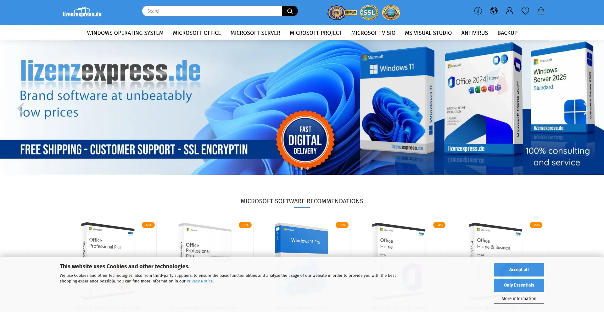 Cybersecurity Shopping Reliable Payment Method Deals Microsoft Software Cookie Consent Trust Seal Google Tag Manager Multilanguage Good Trustpilot Score Established Domain High Trust Score