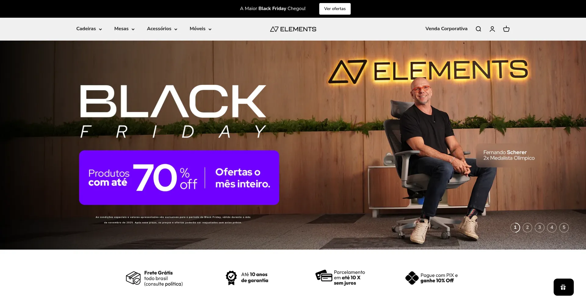 Cadeiras ergonômicas Elements. Conforto, ergonomia e design para escritório e home office. Melhore sua postura e produtividade. Explore nossa coleção e aproveite as ofertas.