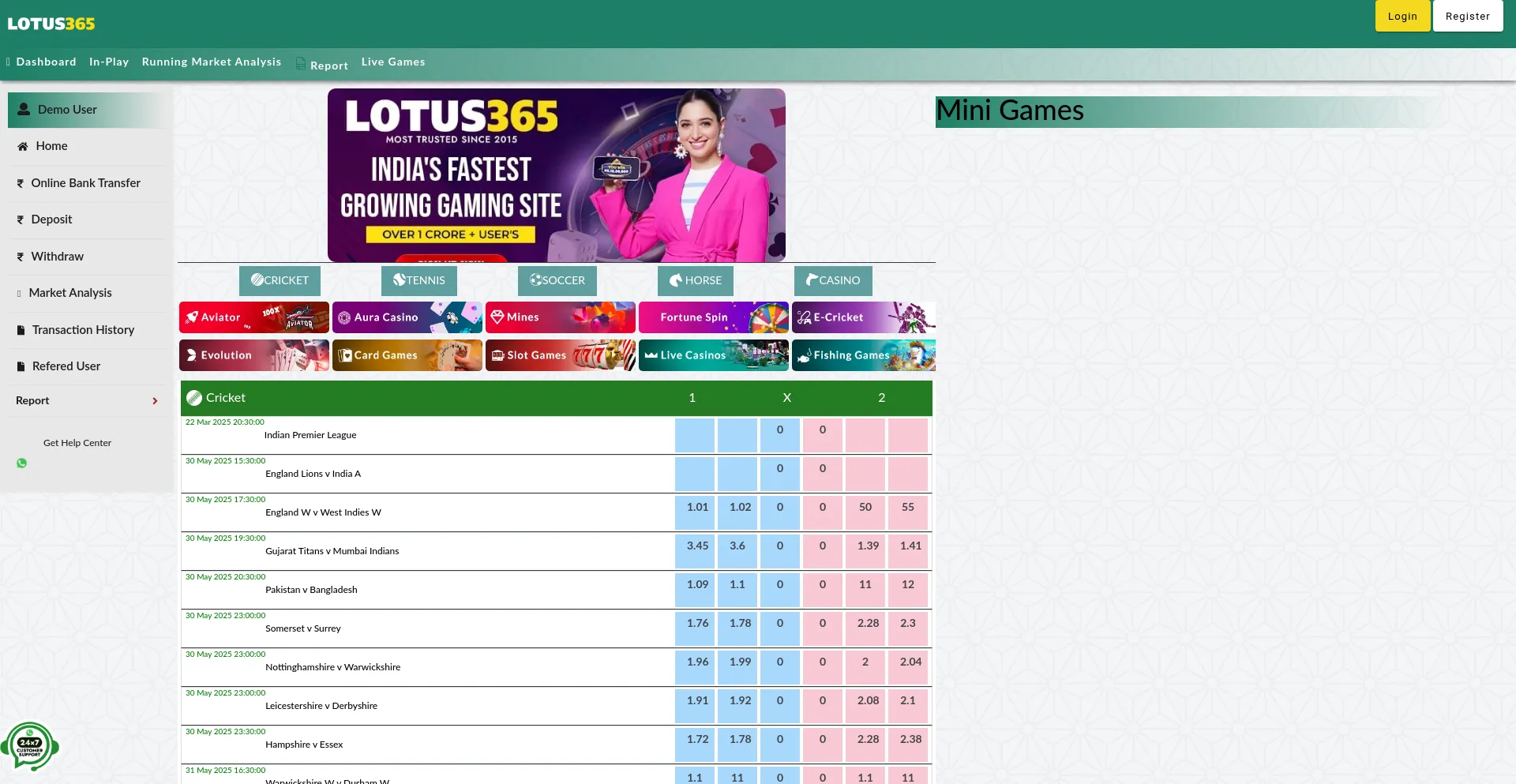 Lotus365 India's First Legal and Fastest Sports exchange and Casino Platform