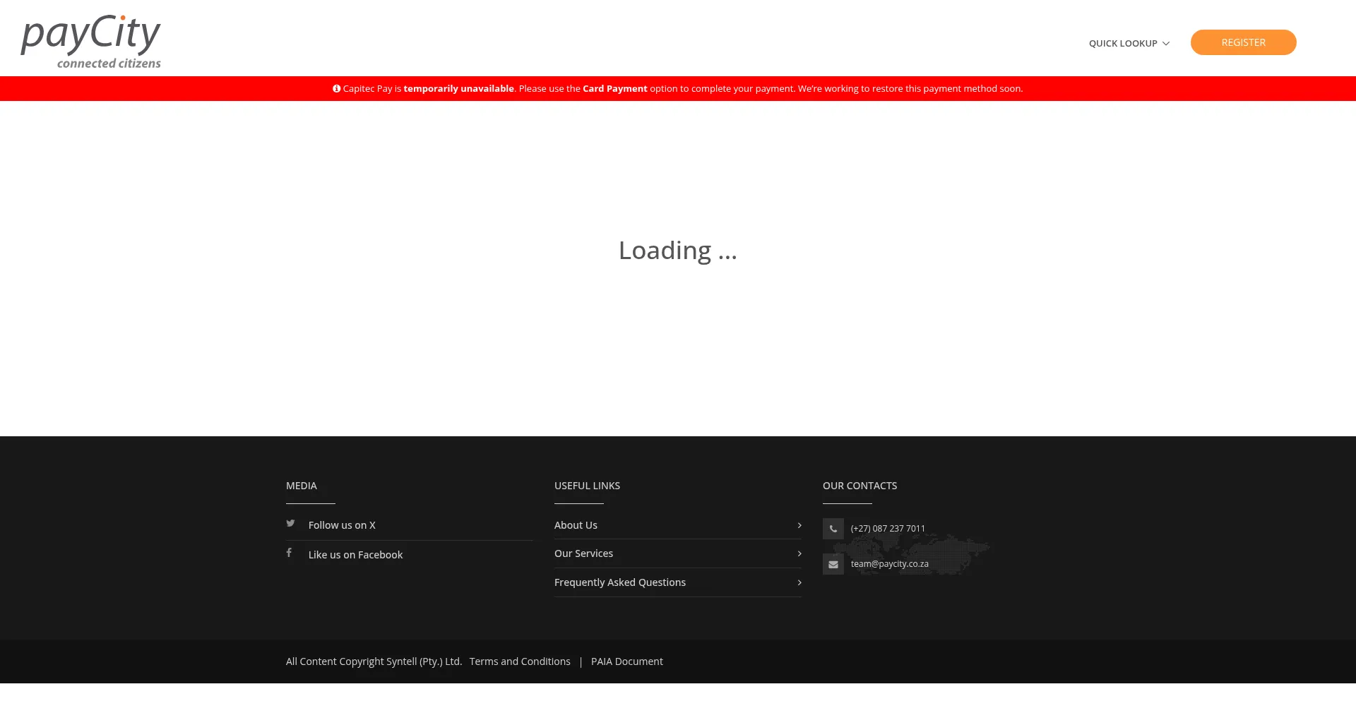 payCity allows you to view and pay your traffic fines, renew your car licence online, settle your municipal accounts, buy prepaid utilities