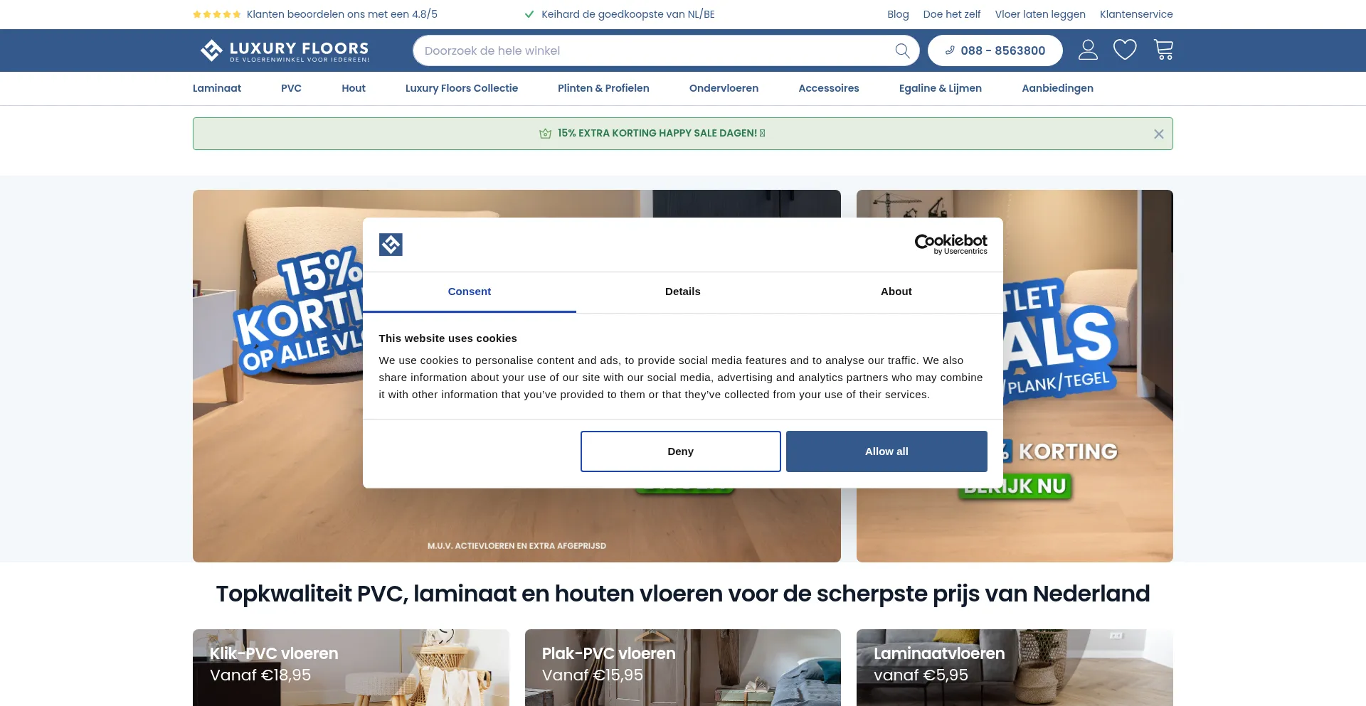 Die Website implementiert Cookie-Zustimmungsmechanismen in Compliance mit Datenschutzregulierungen wie DSGVO oder CCPA. Dies demonstriert, dass luxuryfloors.nl Datenschutzstandards einhält und Benutzern Kontrolle über persönliche Datenerfassungspraktiken bietet.