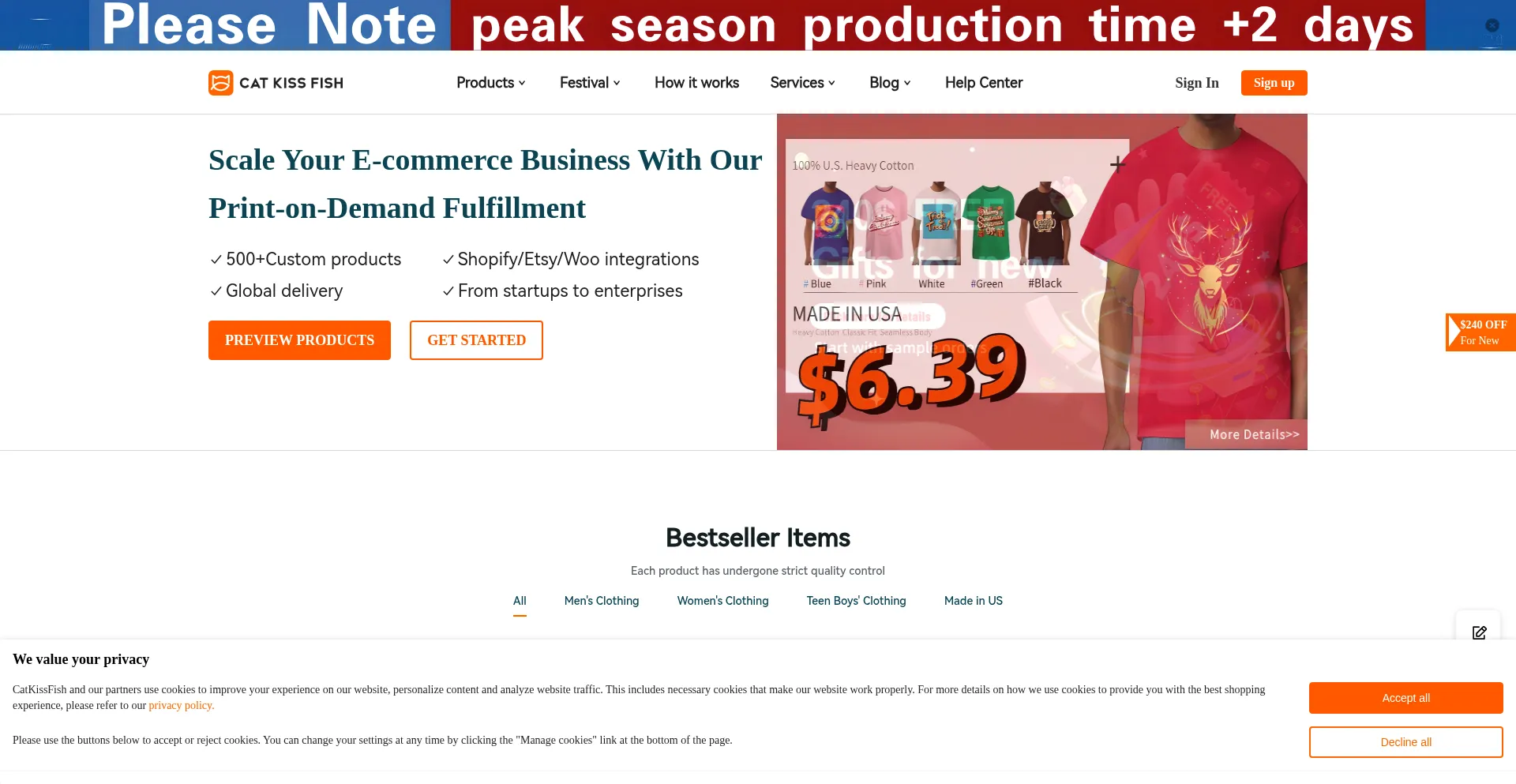 Design and sell custom apparel easily with CatKissFish’s print-on-demand dropshipping service. No inventory, quick global shipping, build your brand.
