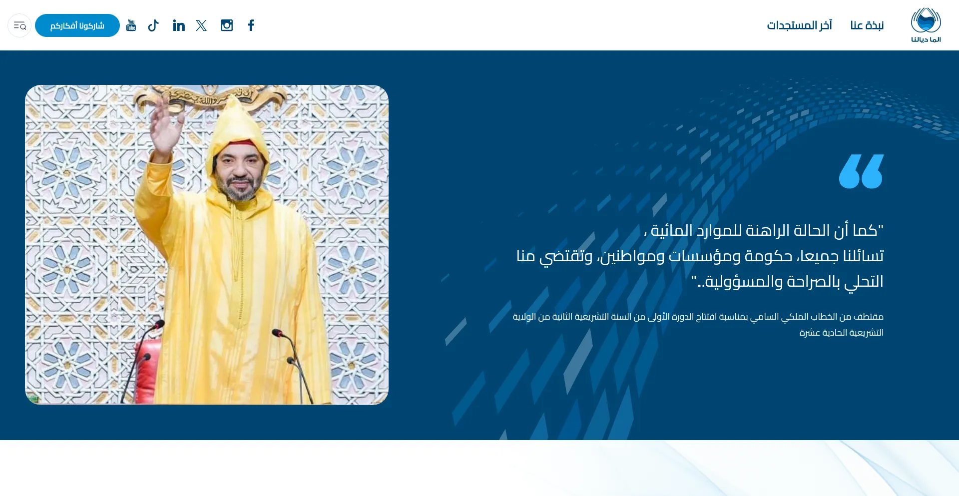 Die Anwesenheit von Social-Media-Links auf der Website deutet darauf hin, dass maadialna.ma offizielle Konten auf Social-Media-Plattformen beibehält, was ein positiver Indikator für Glaubwürdigkeit und Engagement ist.