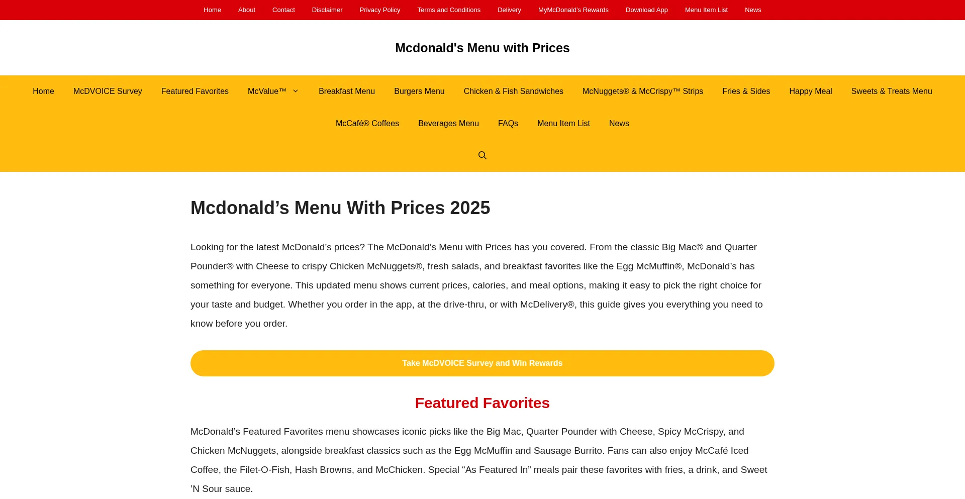 Mcdonald's Menu With Prices 2025