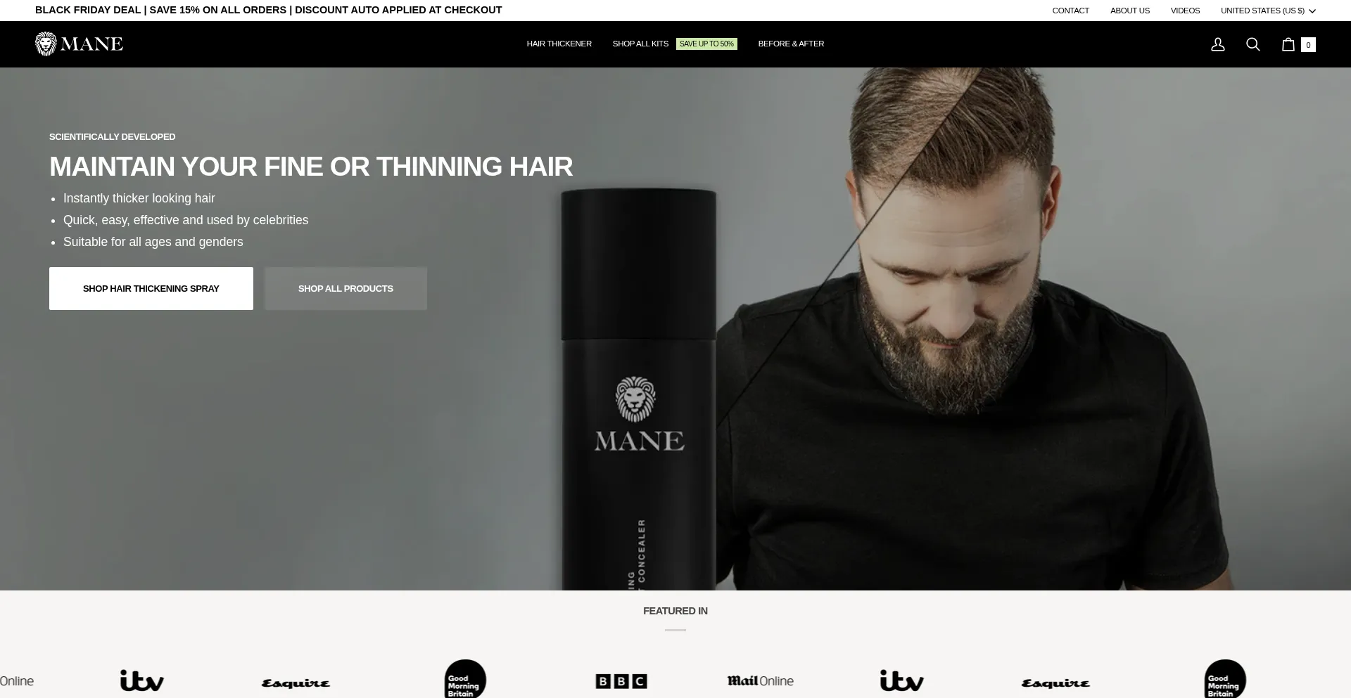 Mane Hair Thickener is used by celebrities the world over. Instant results. Thicker, natural looking hair in seconds. Suitable for all genders.
