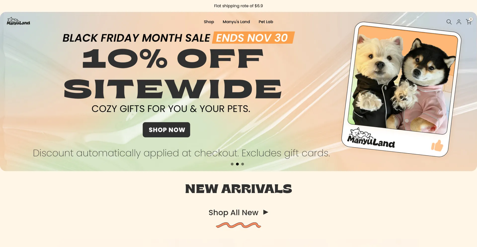 Shopping, Reliable Payment Method, Deals, Uses Free eCommerce Engine, Pets, Registration Form, Shopify Platform, Google Tag Manager, Facebook Integration