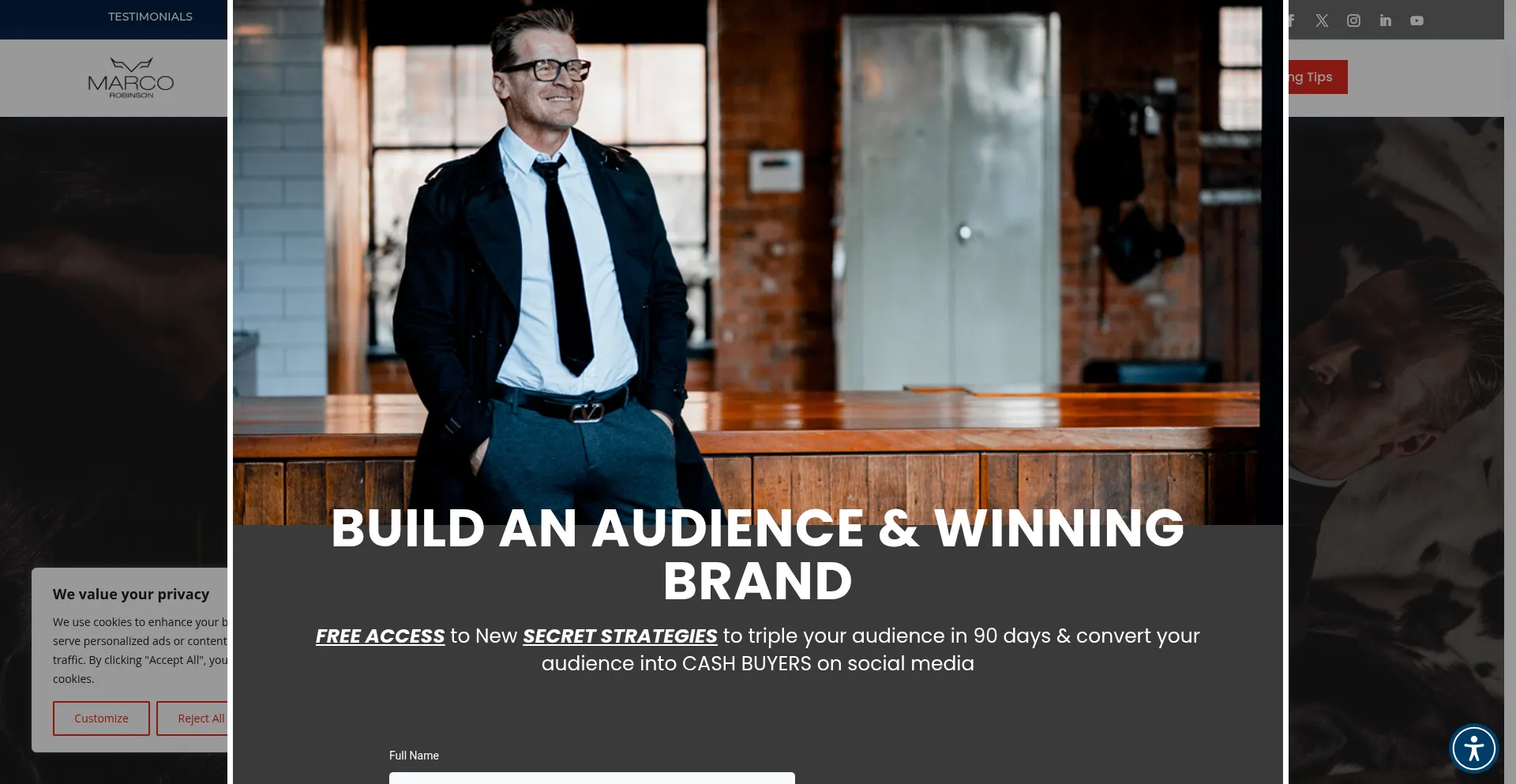 Die Anwesenheit von Social-Media-Links auf der Website deutet darauf hin, dass marcorobinson.com offizielle Konten auf Social-Media-Plattformen beibehält, was ein positiver Indikator für Glaubwürdigkeit und Engagement ist.