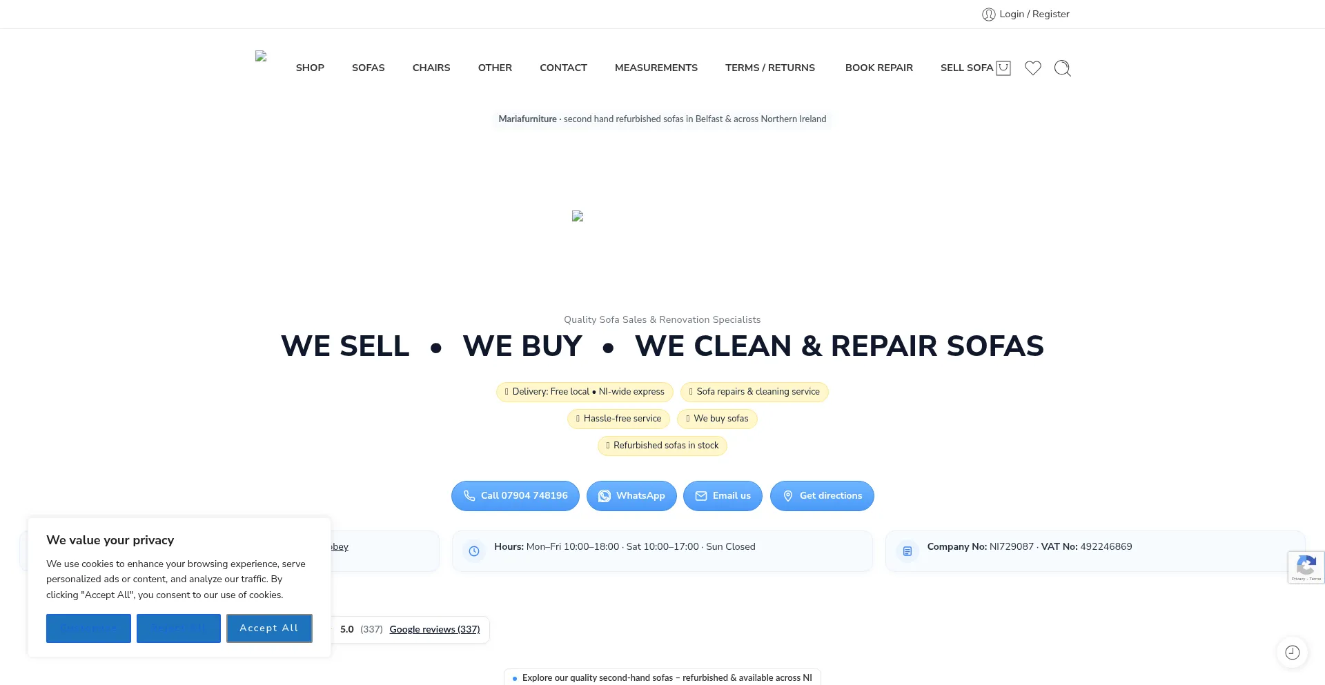 Second-hand refurbished sofas in Belfast & Northern Ireland. Professionally cleaned, like-new. Same/next-day delivery. Mariafurniture.