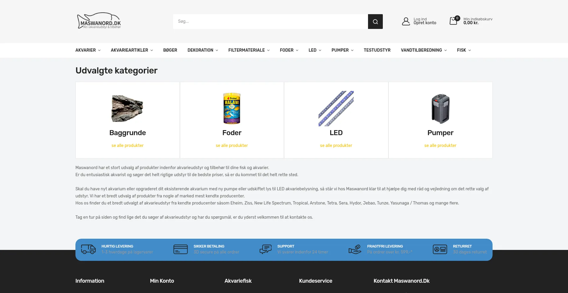 Akvarieudstyr, fiskefoder, filter og LED til dit akvarium