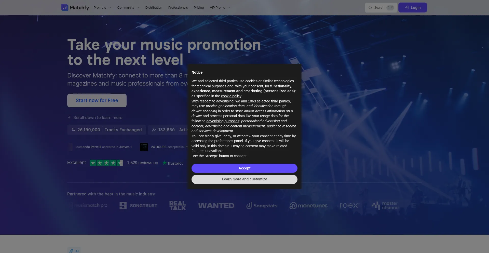 Welcome to Matchfy! Discover the world's largest music promotion community. Join Matchfy today to connect, promote, and elevate your music to new heights