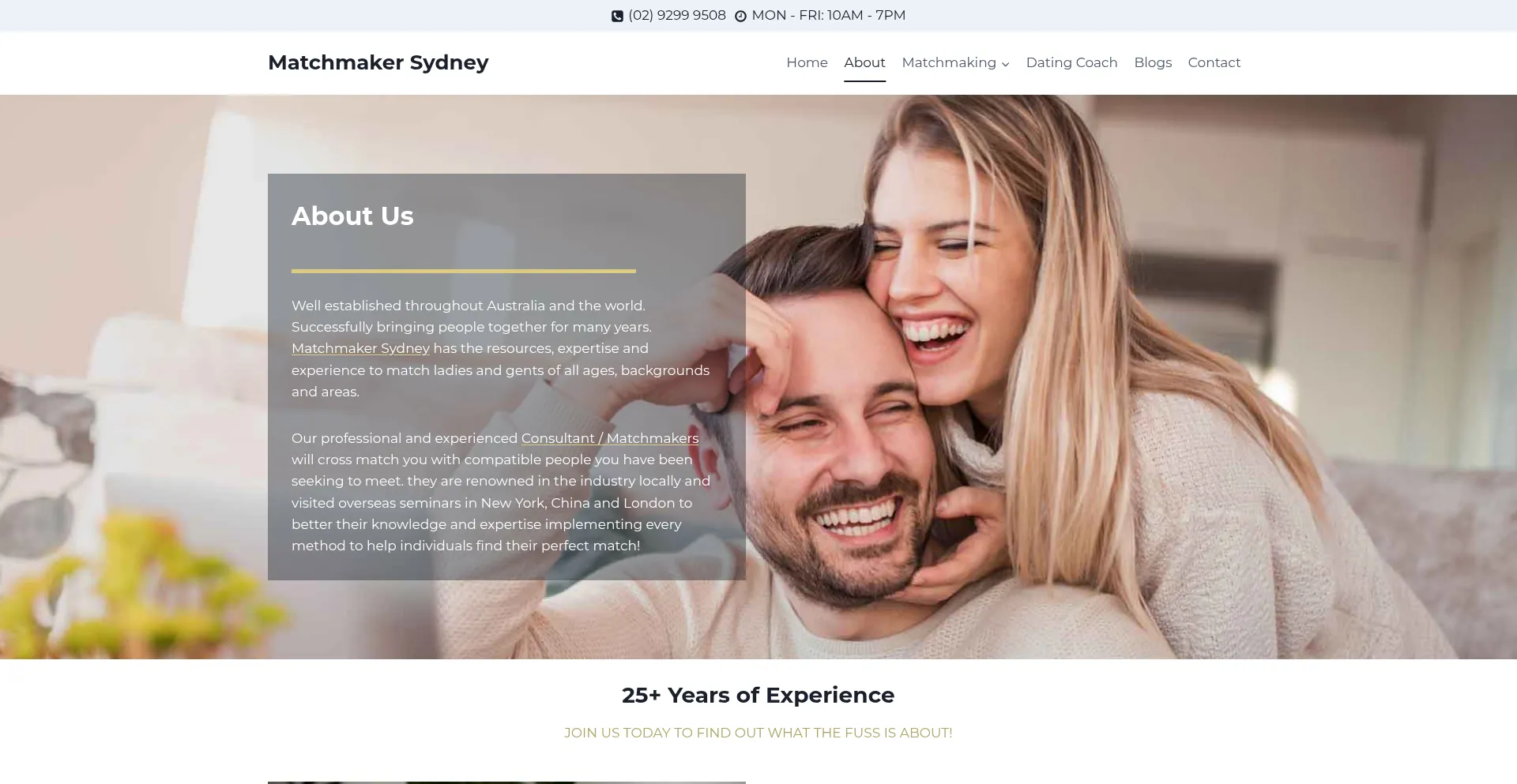 About - Matchmaker Sydney - Over 27+ Years Experience