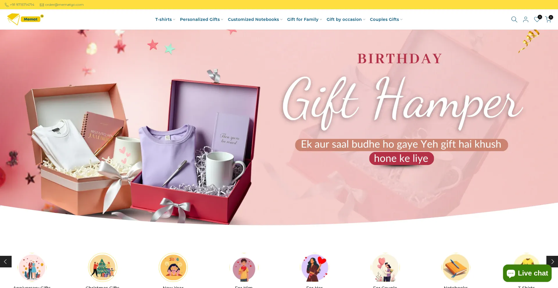 Buy customized gifts online in India from Mematgo. We offers best and unique personalized and customized gifts, gift boxes and hampers for all special occasions.