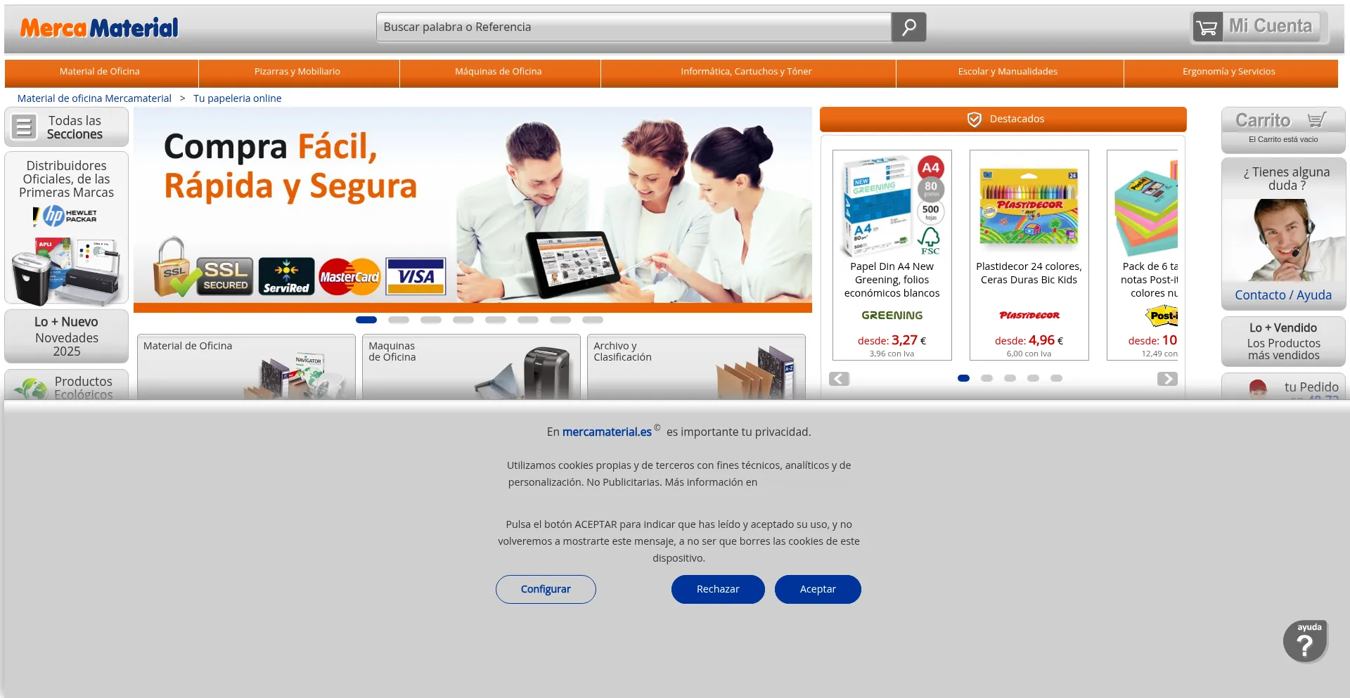 Mercamaterial, material de oficina barato, papeleria online.