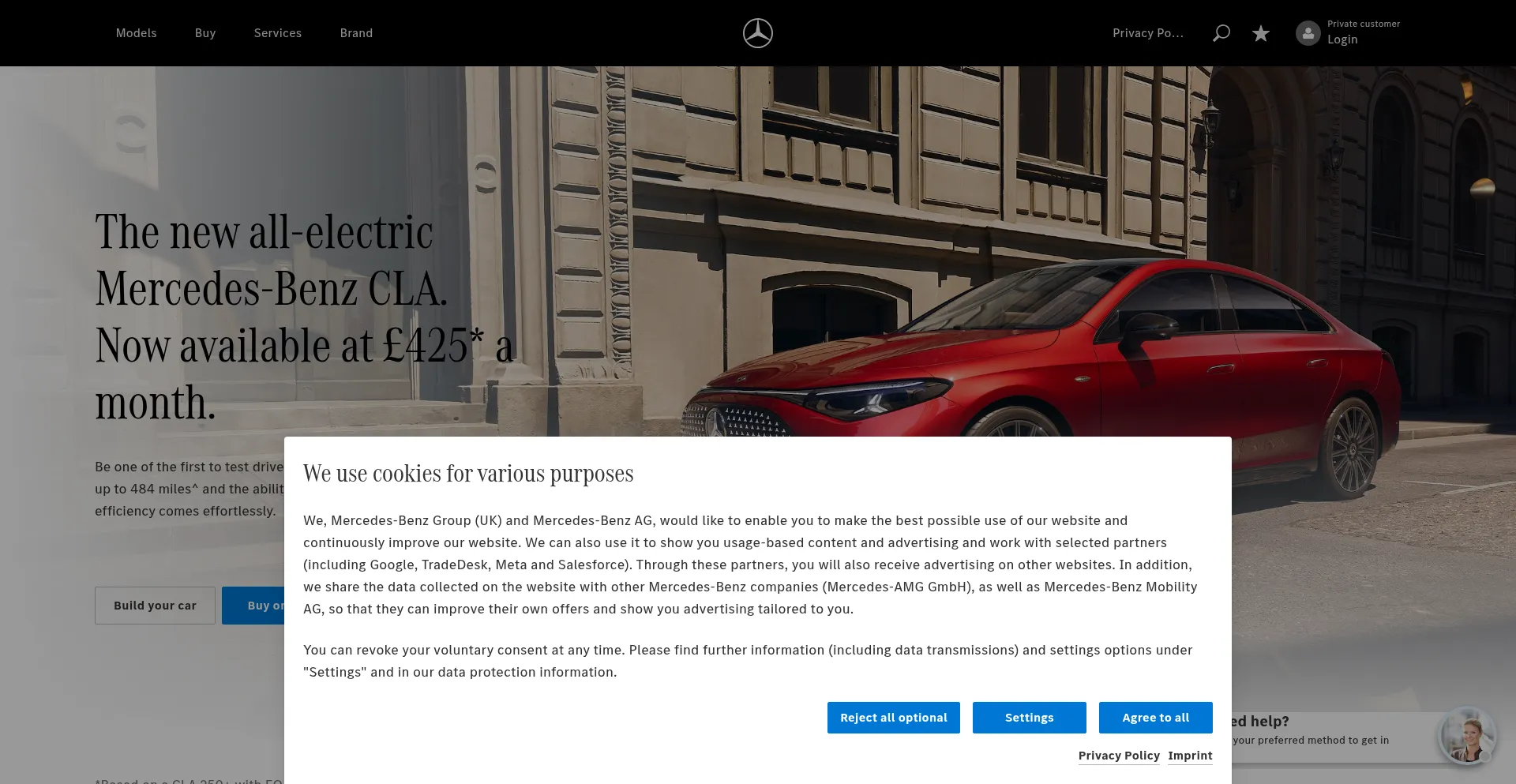 Die Website implementiert Cookie-Zustimmungsmechanismen in Compliance mit Datenschutzregulierungen wie DSGVO oder CCPA. Dies demonstriert, dass mercedesbenz.co.uk Datenschutzstandards einhält und Benutzern Kontrolle über persönliche Datenerfassungspraktiken bietet.