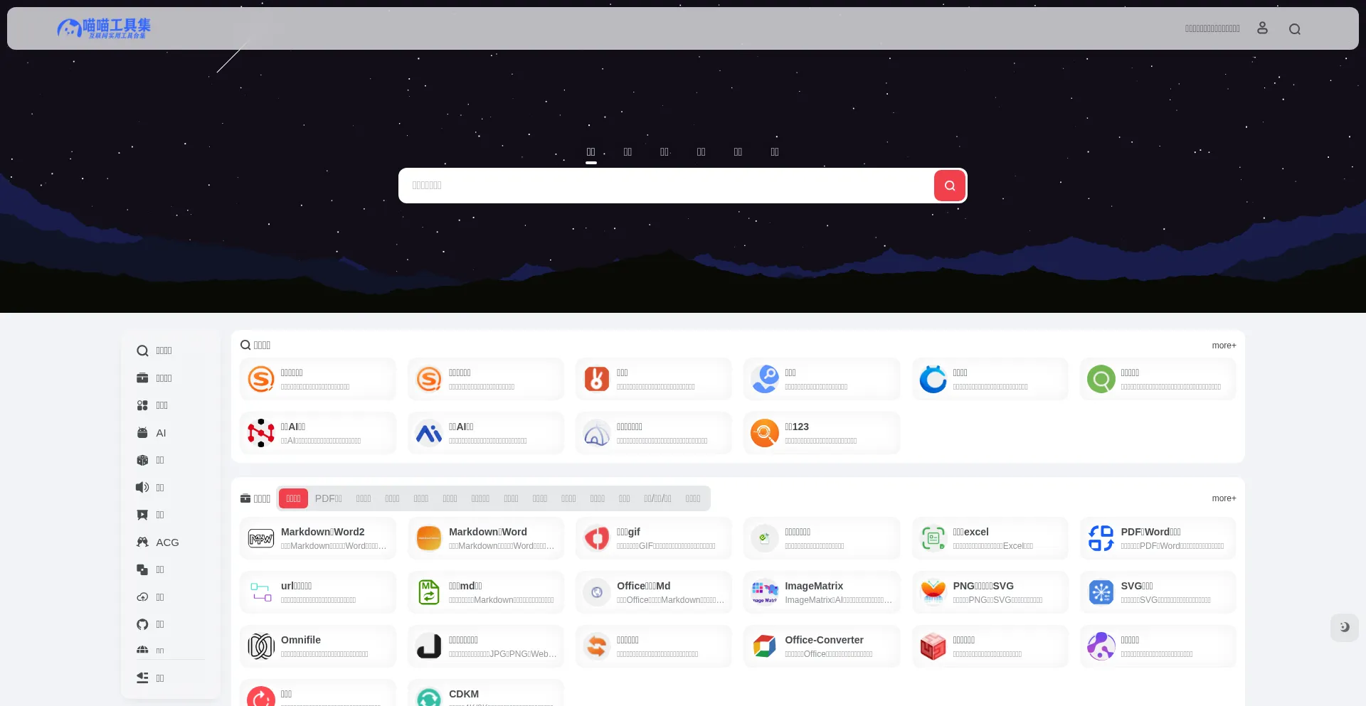 喵喵工具集是一站式多功能平台,集文件转换、PDF编辑、AI工具、图片处理等功能于一体。提供软件、游戏、视频、音乐、动漫、电子�...