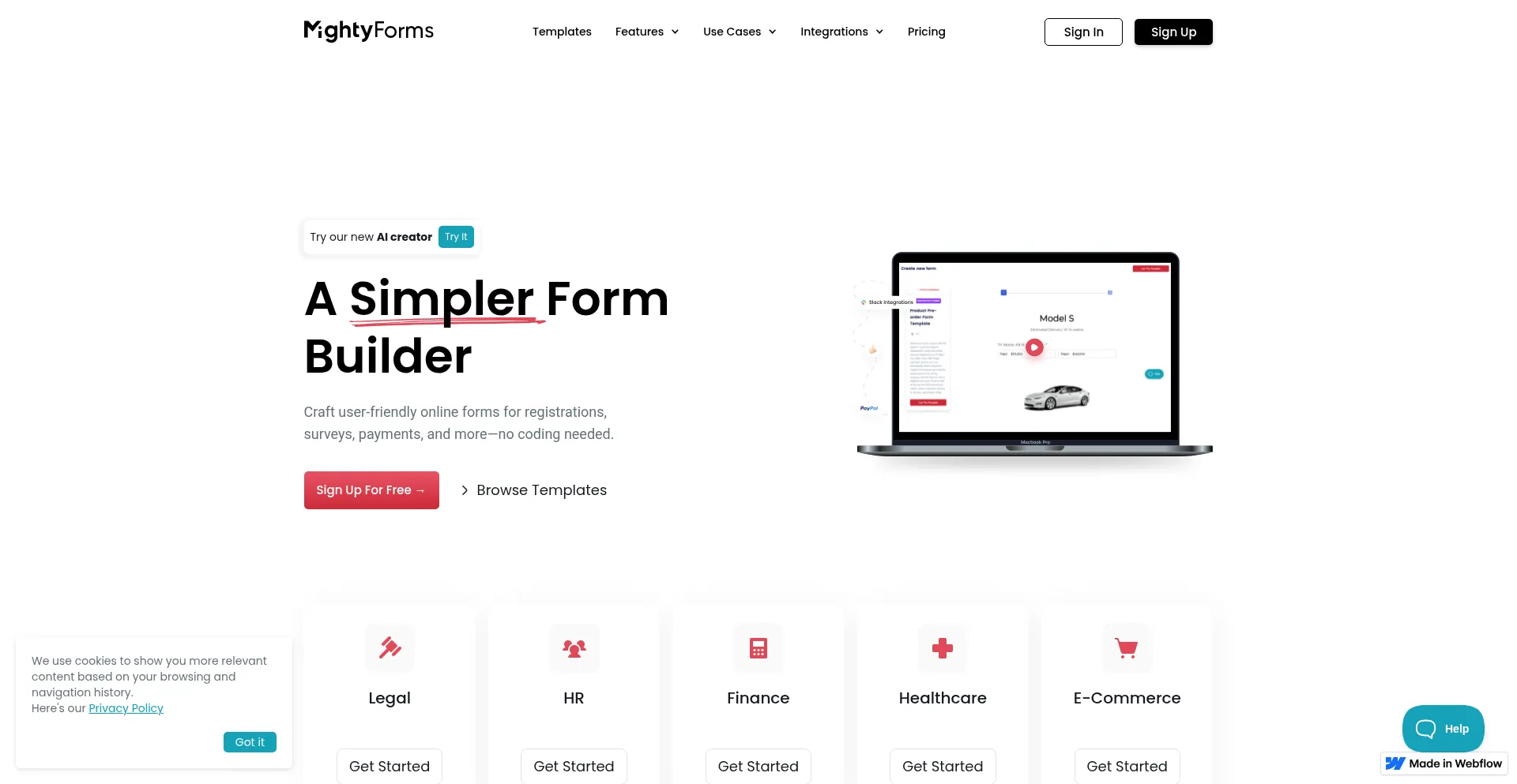 Die Website implementiert Cookie-Zustimmungsmechanismen in Compliance mit Datenschutzregulierungen wie DSGVO oder CCPA. Dies demonstriert, dass mightyforms.com Datenschutzstandards einhält und Benutzern Kontrolle über persönliche Datenerfassungspraktiken bietet.