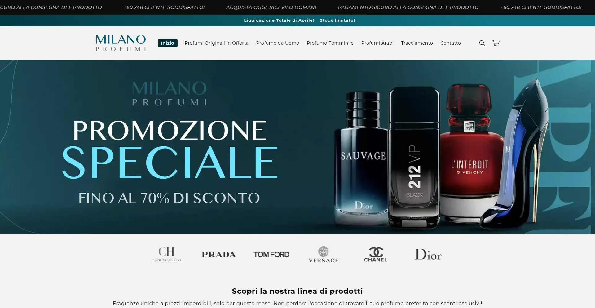 Die Website nutzt beliebte Produktnamen und Marken, um Traffic zu generieren und Benutzerinteresse zu wecken. Diese Produkte können durch Werbekampagnen oder Rabattstrategien angeboten werden, die darauf ausgelegt sind, die Besucherinteraktion und Konversionsraten für milano-profumi.shop zu erhöhen.