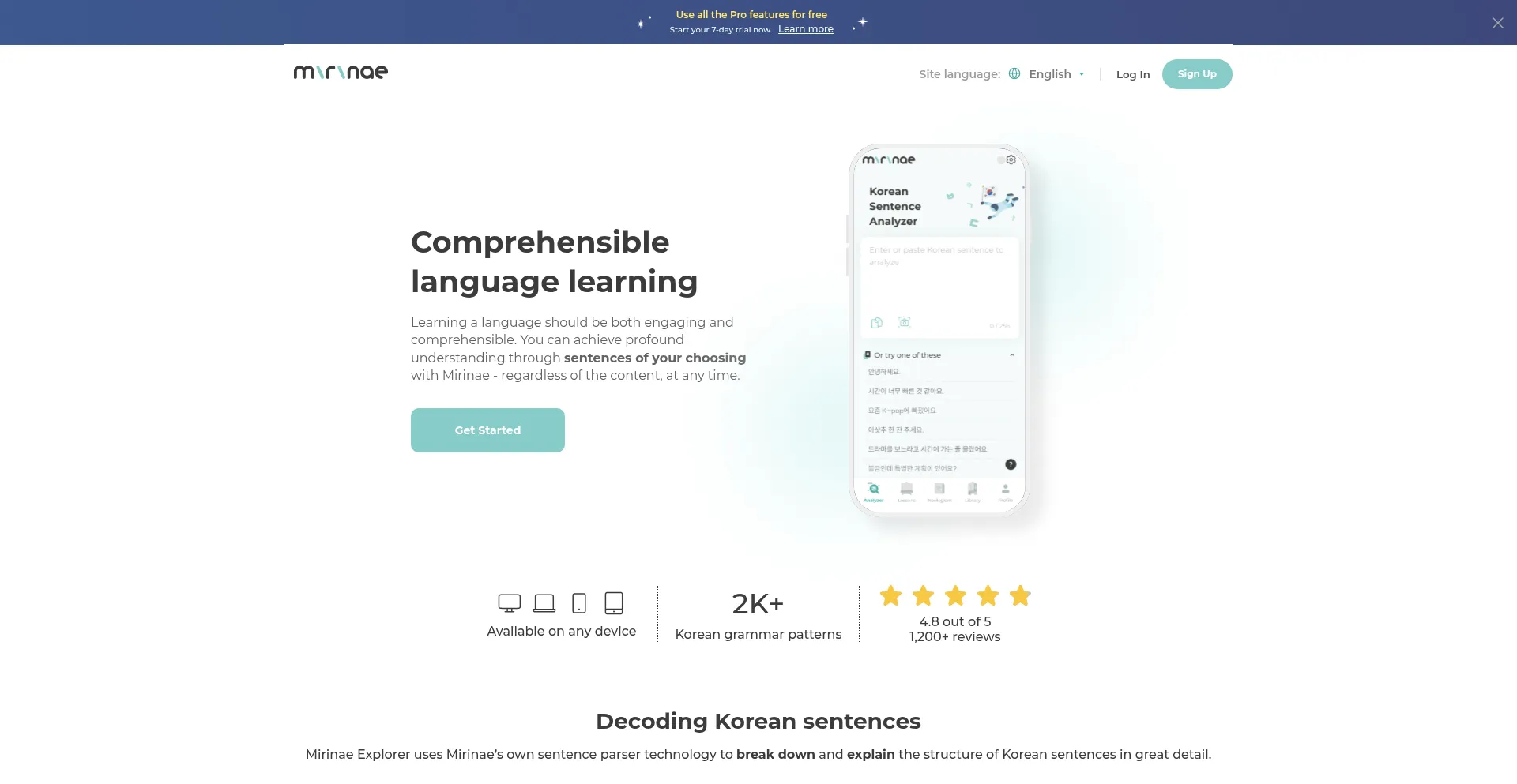 Mirinae Explorer helps you understand the meaning and grammar of any Korean text you give it.