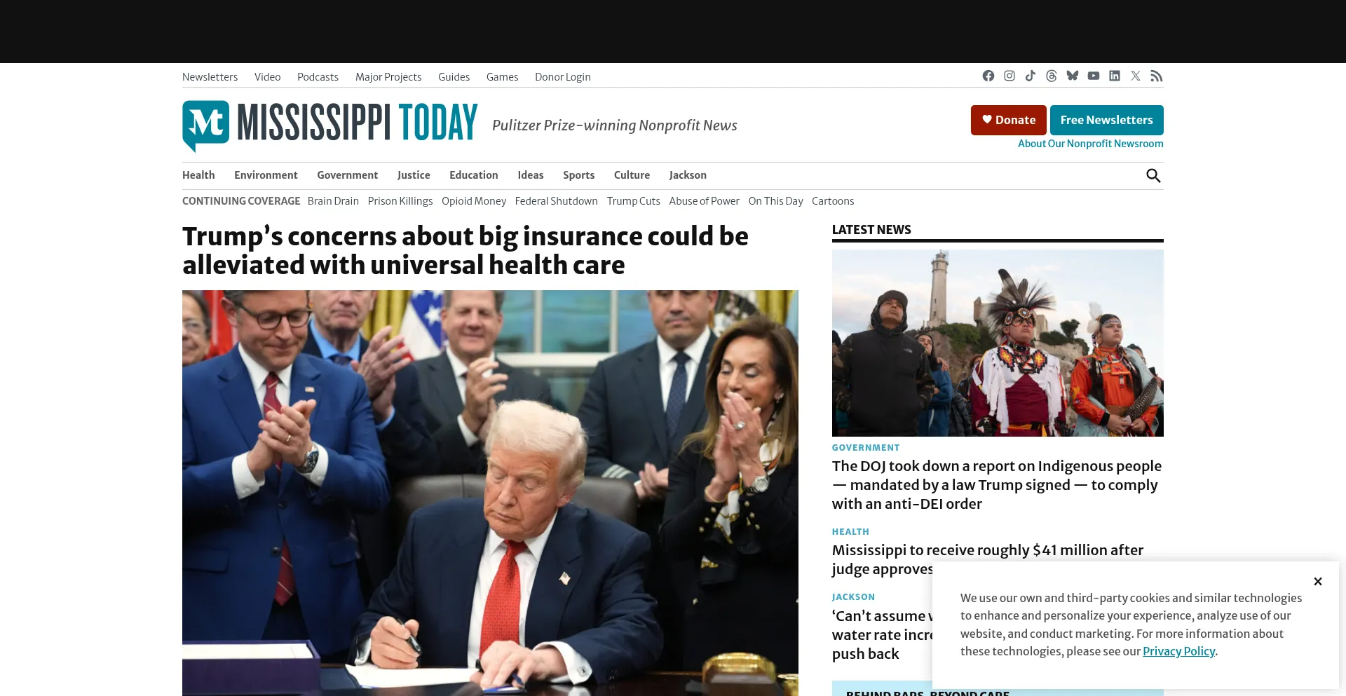 Die Website implementiert Cookie-Zustimmungsmechanismen in Compliance mit Datenschutzregulierungen wie DSGVO oder CCPA. Dies demonstriert, dass mississippitoday.org Datenschutzstandards einhält und Benutzern Kontrolle über persönliche Datenerfassungspraktiken bietet.