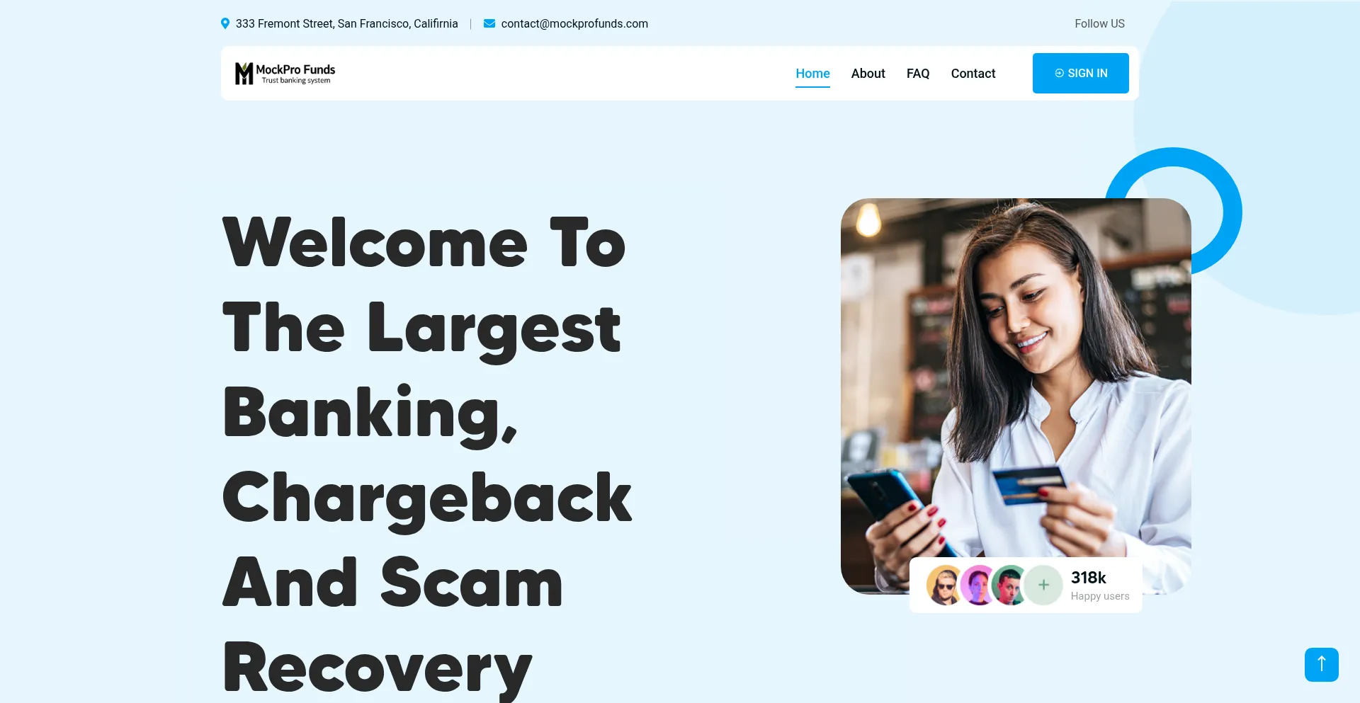 Die Website mockprofunds.com bewirbt Fondswiederherstellungsdienste für verlorene oder gestohlene Vermögenswerte. Während einige auf Erfolgshonorarbasis operieren, können andere Vorauszahlungen erfordern, was auf betrügerische Operationen hinweisen kann. Verifizieren Sie Anmeldeinformationen und regulatorische Compliance, bevor Sie solche Dienste in Anspruch nehmen.