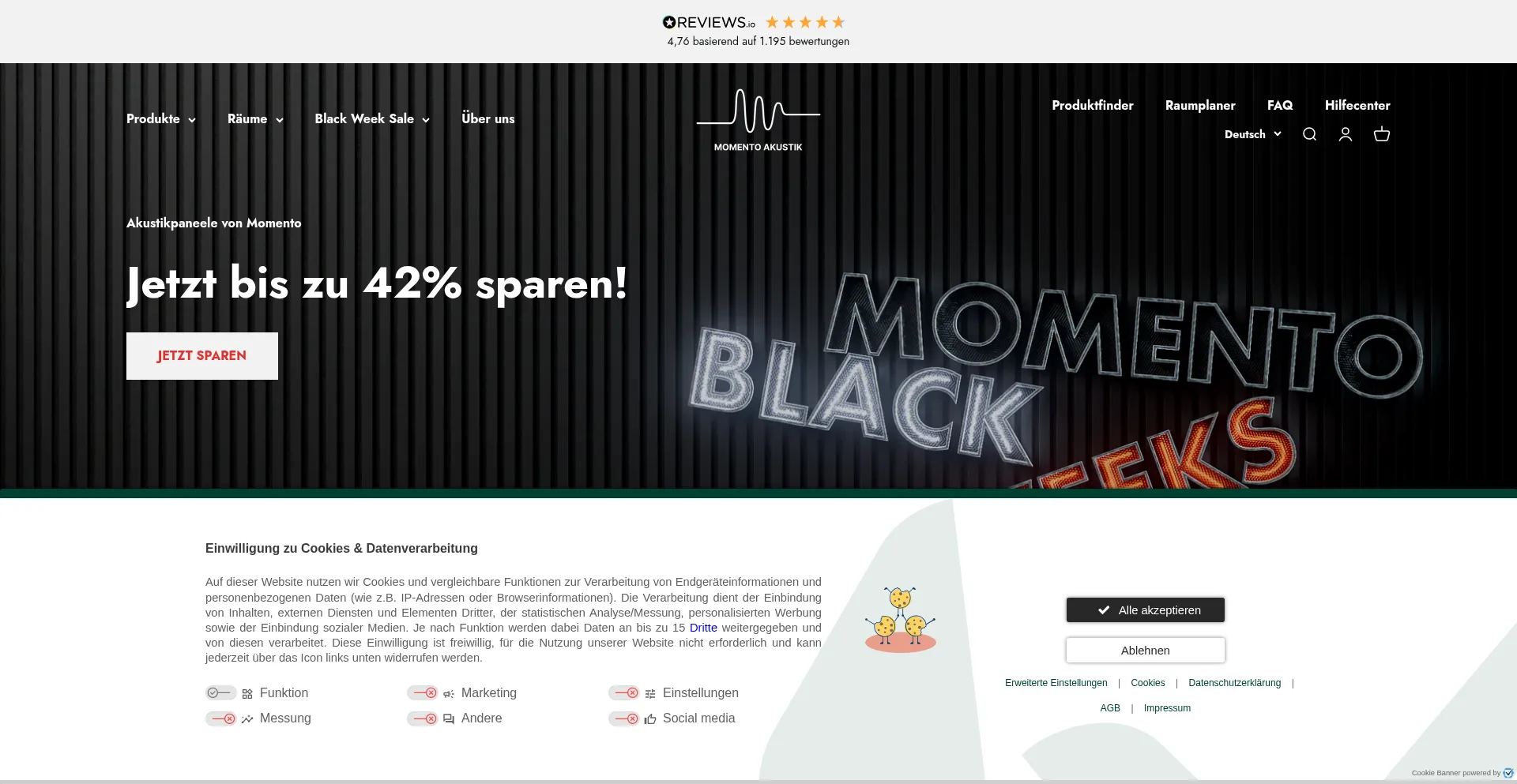Die Website integriert externe Bewertungsplattformen, die es Benutzern ermöglichen, Erfahrungen zu teilen und Produkte oder Dienstleistungen von momento-akustik.de zu bewerten. Bewertungssysteme verbessern Transparenz und erleichtern informierte Entscheidungsfindung, obwohl Bewertungsauthentizität unabhängig verifiziert werden sollte.