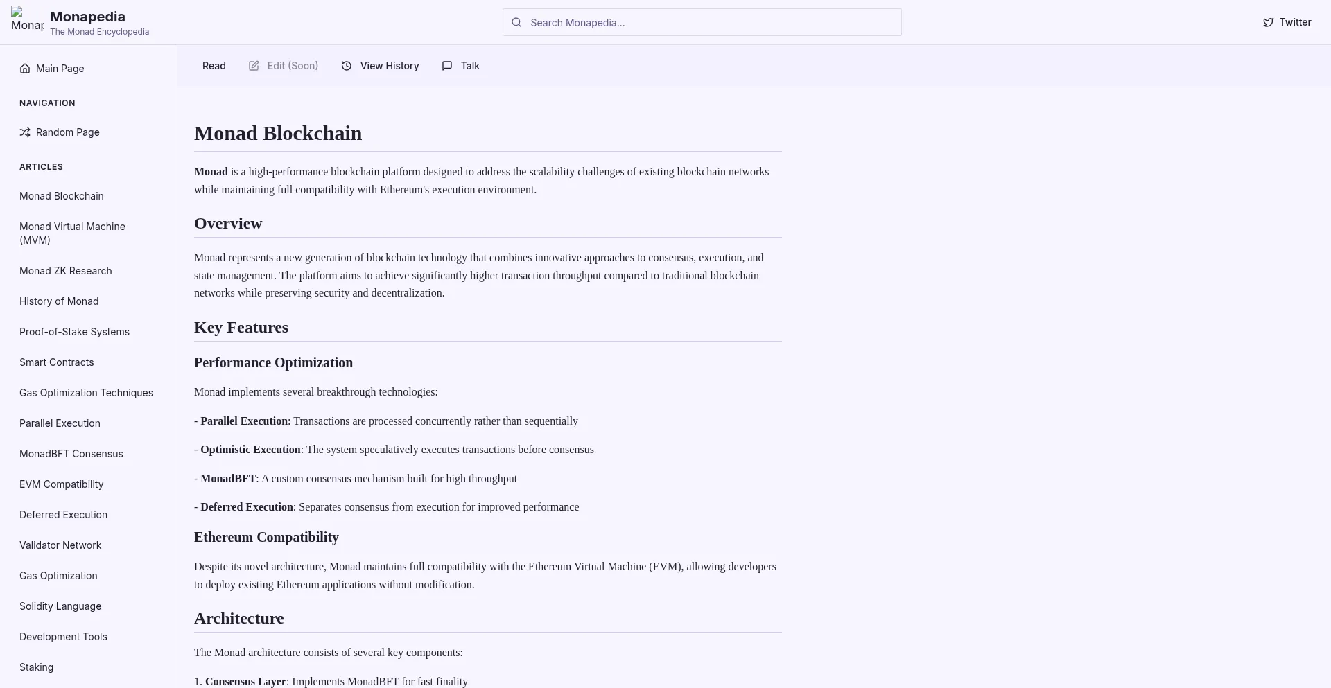 Monapedia is a comprehensive encyclopedia for the Monad blockchain ecosystem, covering everything from the Monad Virtual Machine to gas optimization techniques.