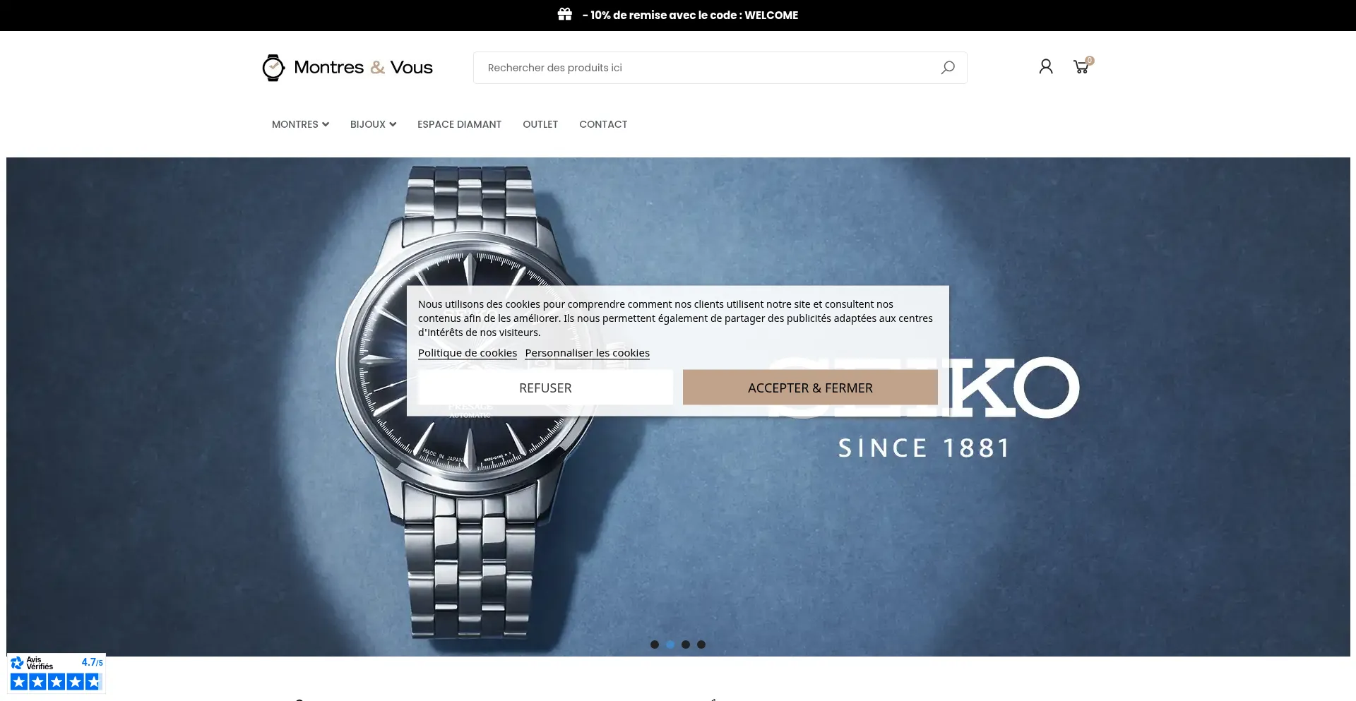 Montres & Vous est le spécialiste de la vente en ligne de montres et bijoux sélectionnés parmi les plus grande marques de montres en ligne : Seiko, Lip, Festina, Cluse etc. ...