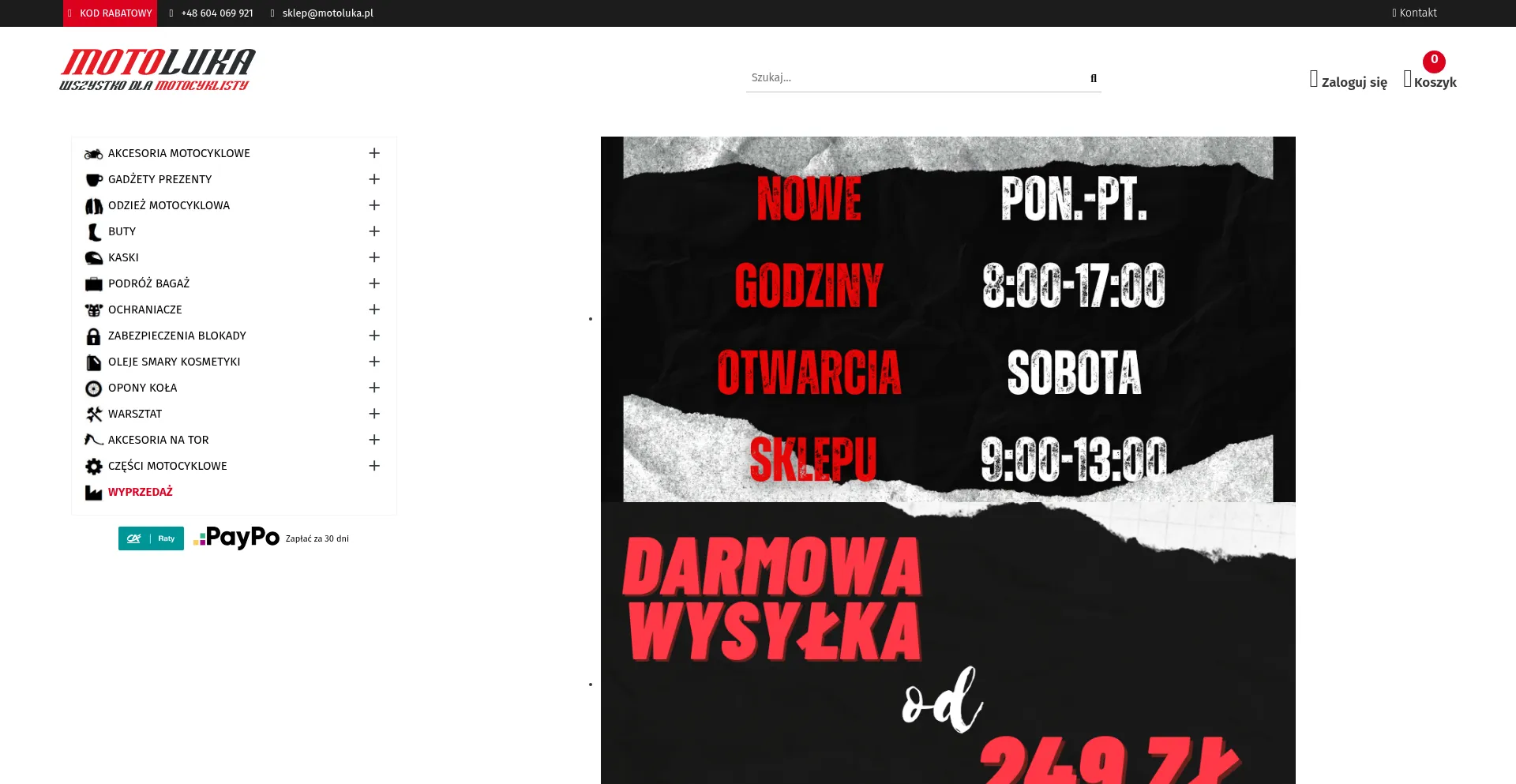 Motoluka sklep motocyklowy oferuje: części do motocykli, skuterów, odzież kaski, obuwie kurtki spodnie, ochraniacze, opony oraz akcesoria motocyklowe.