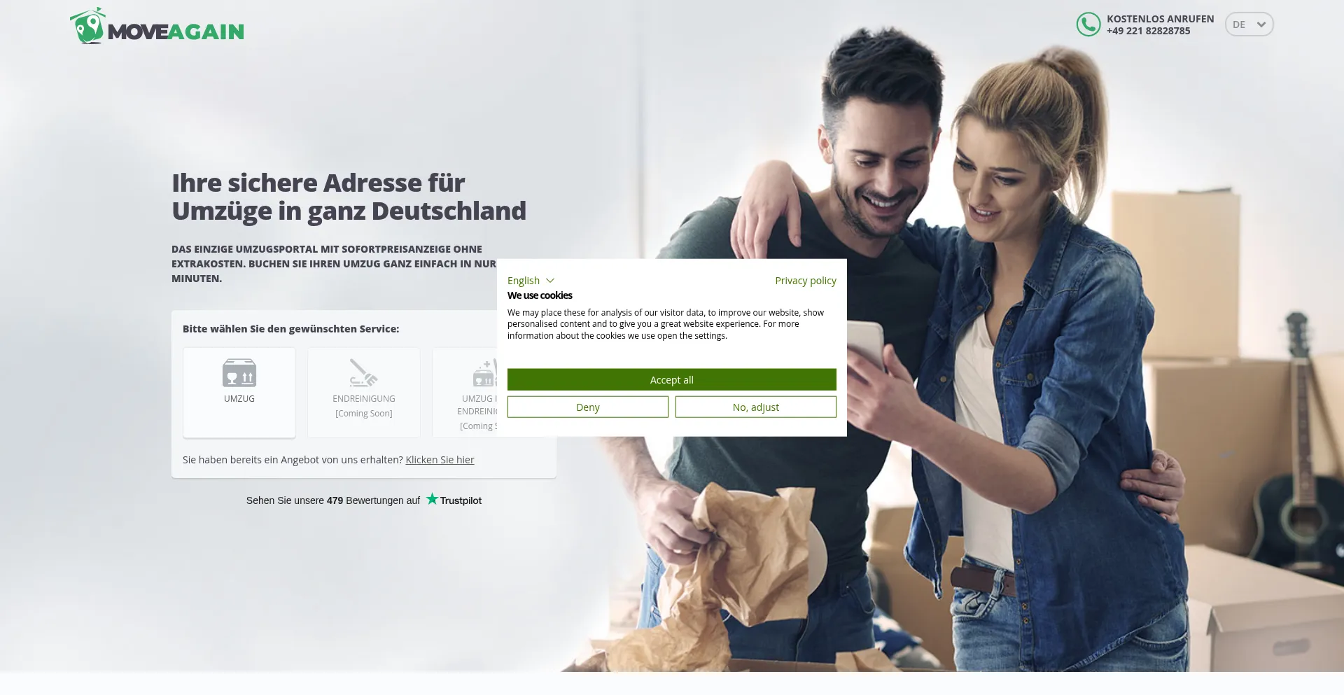 MoveAgain: Ihre sichere Adresse für Umzüge in Deutschland ✔ Das einzige Umzugsportal mit Sofortpreisanzeige ohne Extrazahlungen ➨ Umzug in 3 Minuten buchen