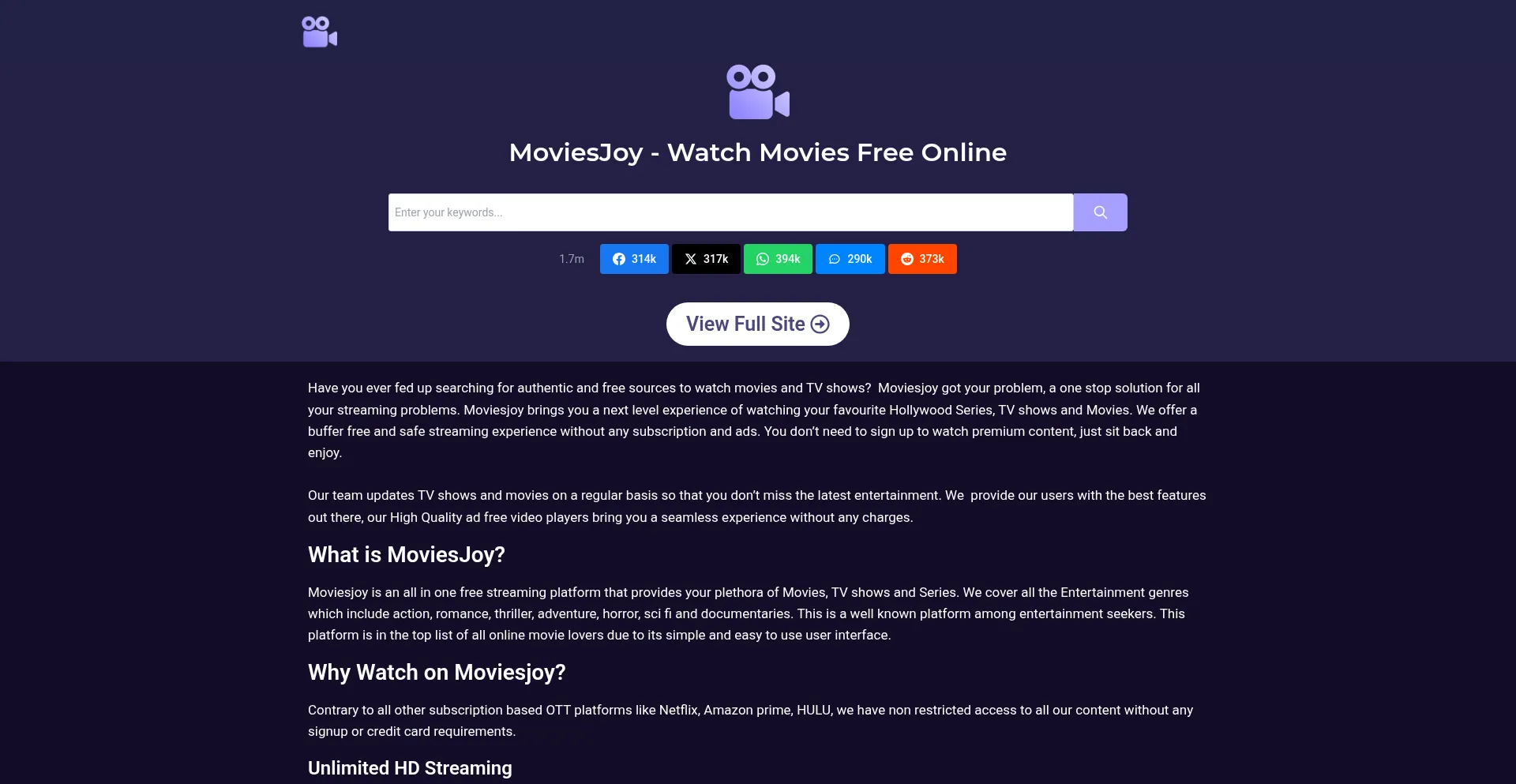 MoviesJoy is a Free Movies streaming site with zero ads. We let you watch movies online without having to register or paying.