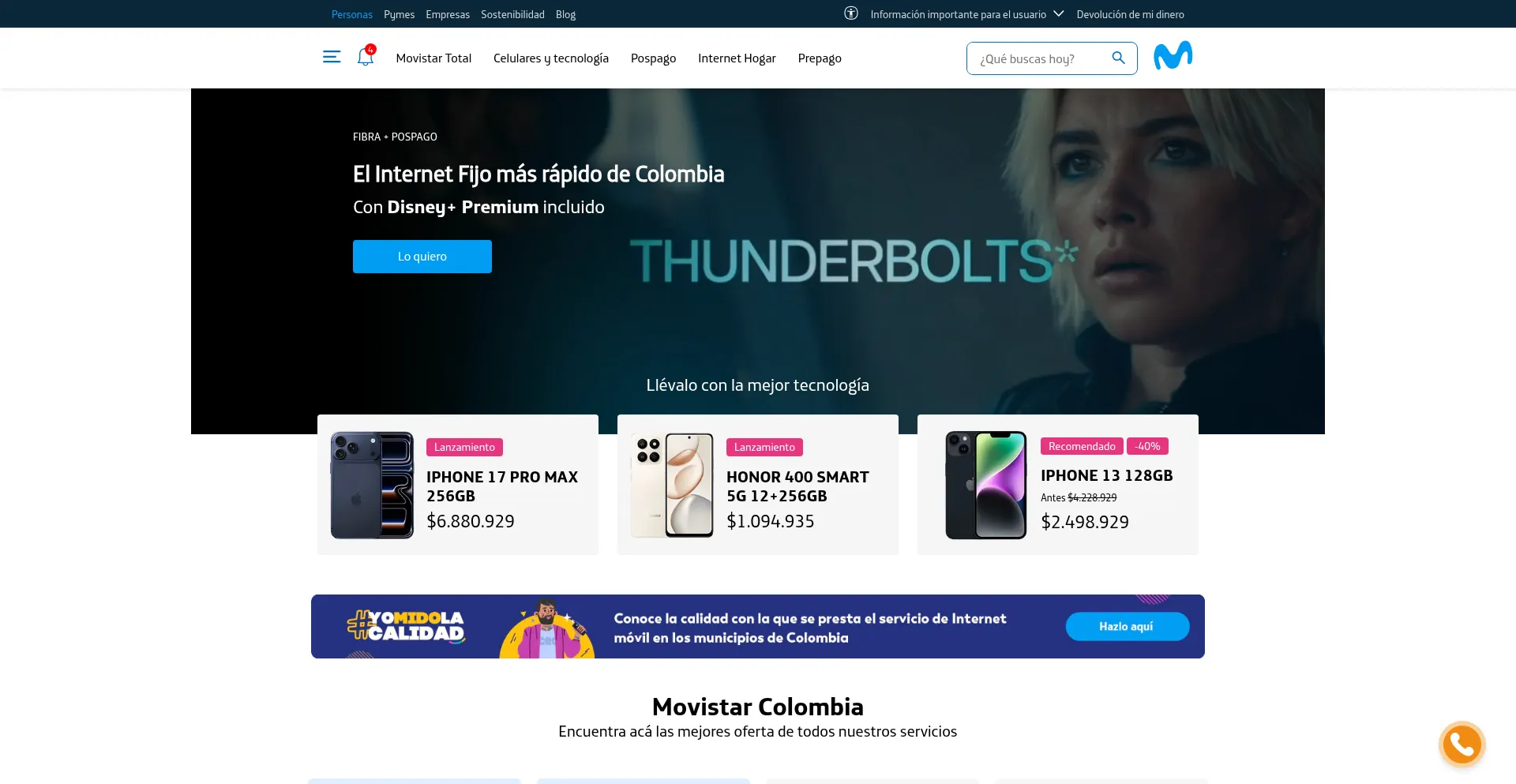Internet Hogar, Pospago, Prepago y Celulares – Movistar
